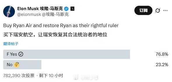 马斯克与瑞安航空CEO奥利里发生冲突,再度提出收购该航企的想法
