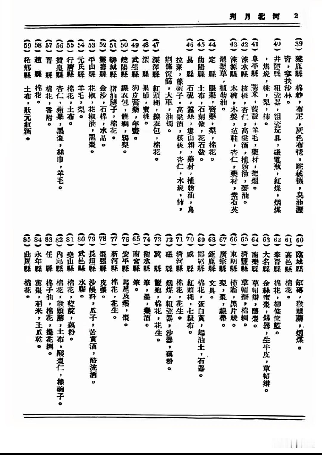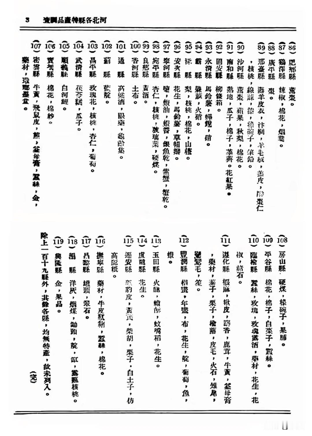 民国时期河北省各县的土特产名录,那时候的北京和天津都还属于河北省。河北