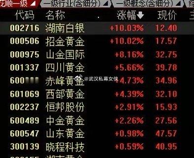 今日又要见证历史了!纽约黄金价格突破4700美元的大关! 午后,黄金价格突然拉升3%以上,大涨130美元,最新价报4735美元。又是一个历史新高到来!收到黄金价格大涨的影响,A股市场的黄金概念个股普遍涨势很好.湖南黄金招金黄金双双涨停板,山金国际等紧随其后,股价也是同步创新高。黄金一直是贵金属的龙头,美联储的降息周期到来刺激金价不断走高,同时世界各国央行的增持行为也是助推金价的因素,还有地区不安定因素的存在,避险需求的助力金价上扬。黄金一涨,那么后面白银、铜、铝、稀土等金属都会跟随而上,商品市场的大牛市来了!关注有色金属的机会是2026年的重要一条线路,适合大多数人!