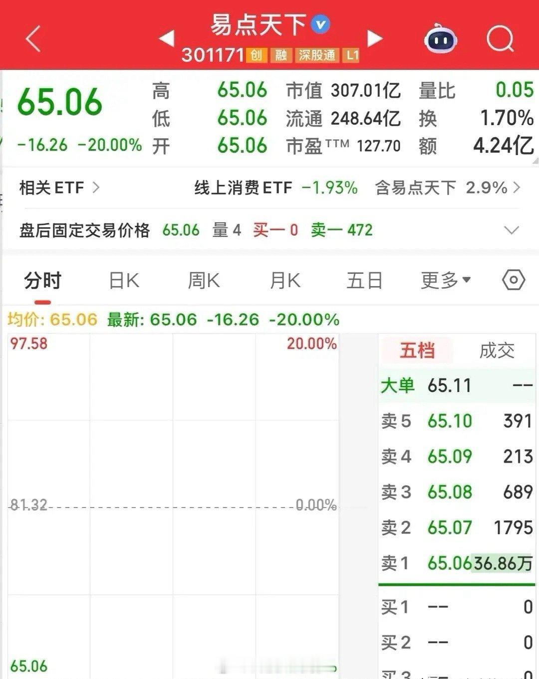 今日市场延续调整,个股下跌数量达3100只,高位股成重灾区,收盘时16只股票跌停,较开盘时的4只大幅增加,不少个股盘中上演高开低走或低开低走的“套人”戏码。平潭发展堪称典型。在连续三个跌停后,今日低开6%,开板时场外资金涌入博反包,股价一度冲高至涨超5%,但午后画风突变,一路下行,最终收跌5.85%。从开盘价10.62到收盘价10.63,看似几乎持平,可高位追入的投资者最高亏超11%,妥妥被套。要知道,这只股年内从1.3元涨到16.8元,涨幅超12倍,大资金早已无心恋战,稍有机会便出货,这种进入下跌通道的票,实在没必要留恋。易点天下更狠,近五个交易日翻倍,年内从12元涨到83元,涨幅近7倍。因短期涨幅偏离估值,1月15日停牌核查,今日复牌直接一字跌停,20cm的跌幅让此前追高者措手不及,且换手率极低,明天能否开板还是未知数。作为文化传媒公司,靠概念炒起来的涨幅,跌起来自然也不含糊。海格通信在3个一字跌停后开板,可股价毫无反弹迹象,反而持续出货,盘中几度跌停,终究是短期涨得太猛,反弹成了奢望。通宇通讯近三个月涨了4倍,连续两跌停后“稳”了两天,不少人以为企稳,谁知今日高开低走,午后封死跌停,两天的假阳线,或许从一开始就是为今天的套人埋下伏笔,31亿成交额、19%换手率背后,是无数追高者的懊悔。神剑股份三个跌停后开板,今日低开4.09%,短暂拉升后迅速下探,上午10点便封死跌停,虽几次开板,实则是出货陷阱,最终14万手封单压顶,四个跌停成定局。要知道,它近一个月靠概念涨了162%,跌起来也同样凶悍。大唐电信则因业绩爆雷,昨晚预告预亏5600万,亏损扩大300.77%,今日低开低走半小时就封死跌停。作为有芯片概念的通信设备公司,业绩不给力,股价自然难有突破,套牢者不知何时才能解套。此外,世茂能源、西部材料、华菱线缆、航天动力、博菲电气、淳中科技、国晟科技、天通股份、三维通信、南京新百、华联控股、华夏幸福也加入了跌停行列,成为今日市场调整的缩影。