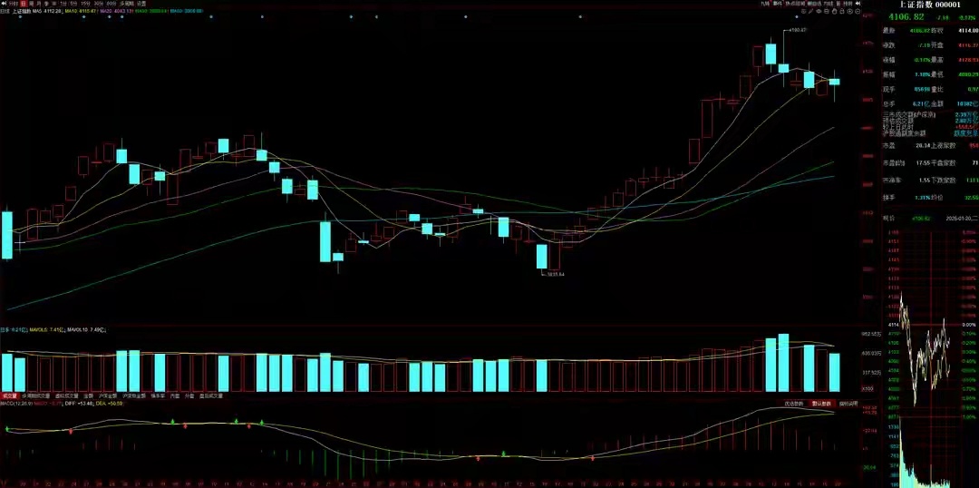 1月21日A股策略:政策蜜月期来临 财政部重磅发力为行情兜底专注A股市场每日实战操作,助力散户精准把握投资方向!对于非长线投资者而言,若想在A股市场站稳脚跟,必须认清一个核心逻辑:周密的布局计划仅是成功的开端,唯有严守铁律的操盘纪律,方能收获最终的投资硕果!大势研判周二A股市场呈现放量窄幅震荡格局,成交量较此前增加700亿,达到2.8万亿规模。从技术形态分析,大盘日线收出带长下影线的十字星,最终企稳于5日线与10日线区间。尽管指数在短期均线附近并未表现出明显转弱迹象,但市场失真特征显著——创业板指当日大幅下挫并击穿20日线,这一走势更能反映当前市场的真实运行状态。结合近期市场规律判断,大盘短期大概率延续横盘震荡走势,具体可能呈现两种路径:其一,在5日线与10日线附近维持窄幅震荡整理;其二,主动回踩20日线展开宽幅震荡。就当前市场表现来看,窄幅震荡仍是短期主导运行模式。盘面跟踪周二沪深两市个股呈现普跌态势,上涨家数仅2200家,下跌家数多达3100家,市场亏钱效应进一步凸显。从板块涨跌表现分析,顺周期主题逆势崛起,其中化工板块多个细分领域表现亮眼,环氧丙烷、草甘膦、丙烯酸等细分方向领涨两市;贵金属板块同步迎来大幅上涨。跌幅榜上,商业航天相关板块领跌,军工电子、卫星导航、6G等TMT方向同步走弱。值得注意的是,近期市场主线热点在周二几乎全军覆没,且所有热点板块指数表现均弱于大盘,当前市场格局已呈现出较为明显的不健康特征。消息面跟踪1. 1月20日,财政部副部长廖岷在国新办新闻发布会上明确表态,2026年财政部门将持续实施更加积极有为的财政政策,核心要义可概括为**“总量增加、结构更优、效益更好、动能更强”**。政策层面将确保总体支出力度“只增不减”、重点领域保障“只强不弱”,为市场注入强劲信心。2. 1月20日,上海发布《加强期现联动提升有色金属大宗商品能级行动方案》,旨在强化期货与现货市场的联动发展,合力提升上海有色金属大宗商品的全球资源配置能力与定价话语权,为上海“五个中心”建设提供有力支撑。市场资金面周二机构与游资操作方向呈现趋同性特征。游资资金面出现明显变化,买盘中幅萎缩,卖盘虽小幅减少,但由于买盘萎缩幅度更大,资金活跃度已接近冰点;游资资金流向也从周一小幅净流出,转为中幅净流出状态。机构资金面表现相对较强,买盘保持中幅规模,卖盘小幅萎缩,资金流向从周一大幅净流入转为中幅净流入,尽管净流入规模有所回落,但仍维持净流入态势。从板块资金流向细分来看,主线热点中,机构资金逆势加仓AI应用方向,而游资则对该板块进行减仓操作;非主线热点里,机构资金选择加仓化工板块,游资同样对化工板块进行减仓。当前机构与游资均未形成明确的集中买入方向,短期内市场难有新主线板块崛起引领行情。