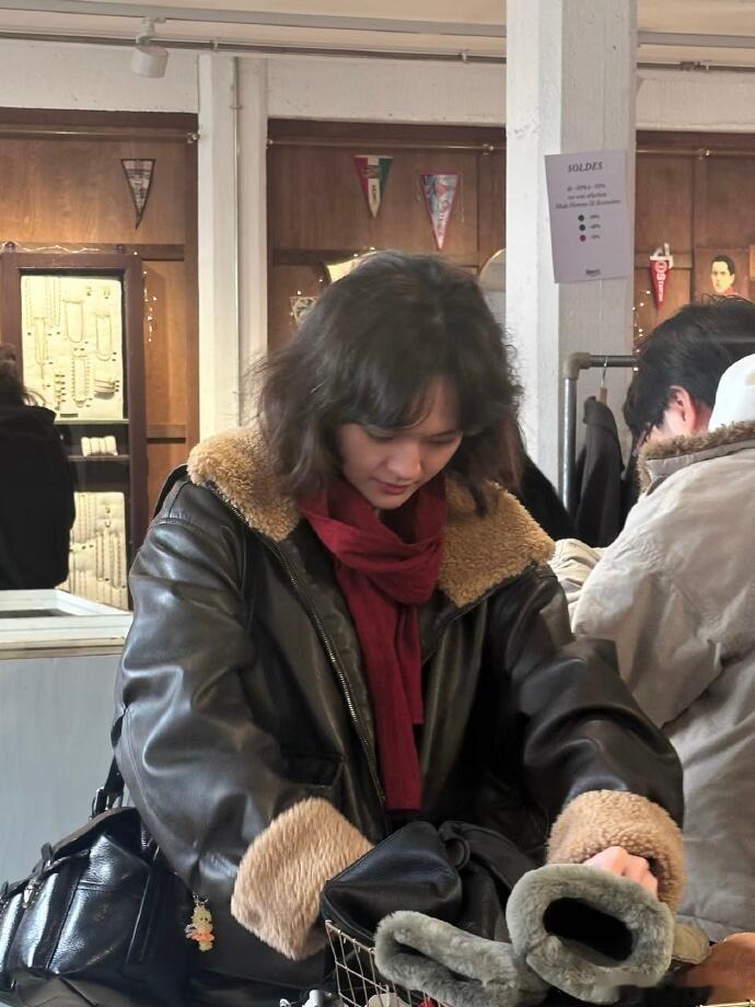 22岁文淇在巴黎一家商场购物被偶遇,她的打扮好时尚,看起来文艺气息满满!镜头感太