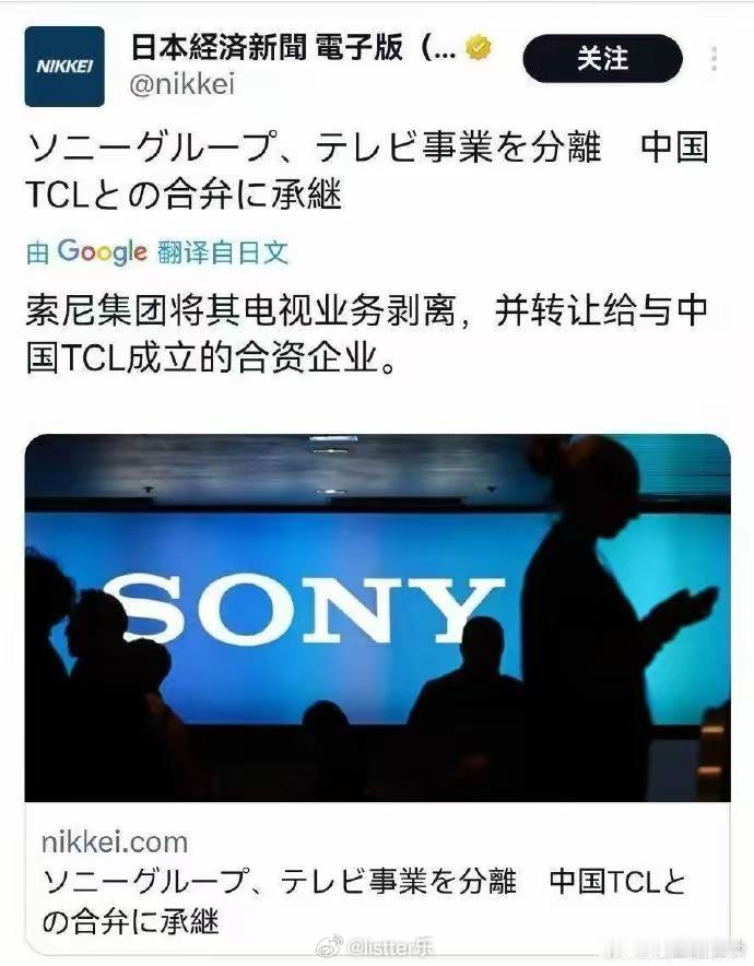 从此以后索尼电视要变成TCL的了!索尼集团20日宣布,将剥离电视业务,并计划与中国电视巨头TCL集团成立合资公司。其中TCL出资占比51%,索尼出资49%。新公司将对电视机及家用音响等业务,从研发设计到制造、销售、物流环节实现全球一体化运营。 简单概括就是TCL收购了索尼的全球电视业务。从此TCL电视可以用上索尼的XR画质芯片了。有点东西