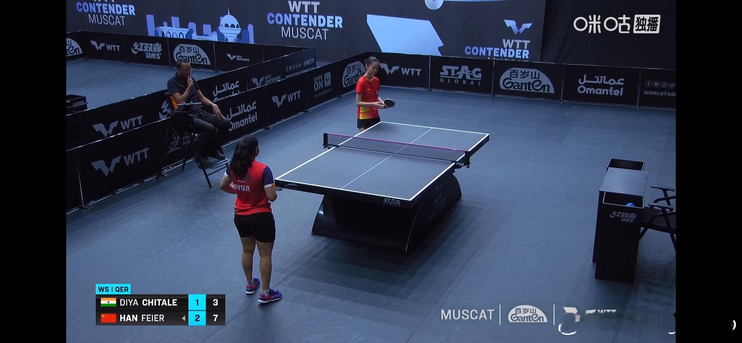 WTT常规挑战赛马斯喀特站2026 女单资格赛:🇨🇳韩菲儿3比1迪亚·帕拉戈·奇塔莱🇮🇳(7-11,11-3,12-10,11-4)韩菲儿晋级女单正赛