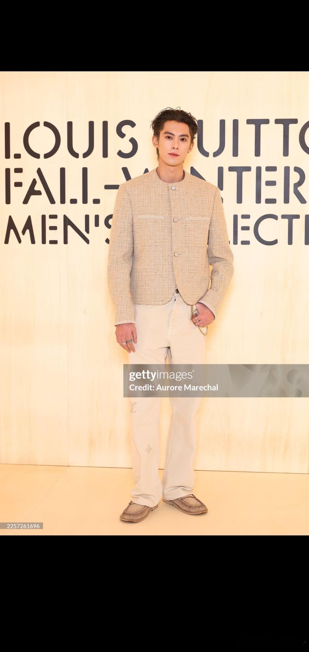 王鹤棣|路易威登2026秋冬男装秀看秀造型出图,身穿2026早秋男士系列米色套装