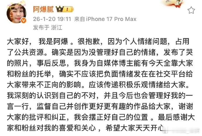 阿爆道歉1月20日,留几手发文爆料阿爆捞钱套路阿爆就发布哭视频一事发文道歉,网友不买账,留几手发文爆料阿爆捞钱套路,称她之所以发哭视频是为了拉一波热度,让自己的数据好看,方便接广捞一笔,不值得被同情网友听完留几手的话,因阿爆不满的气顺了,还有人开始调侃留几手,你也是没放过她,留几手嘴巴虽然厉害,但他说的大都是实话,句句反讽意味十足,今天终于知道他当初为什么会火了……
