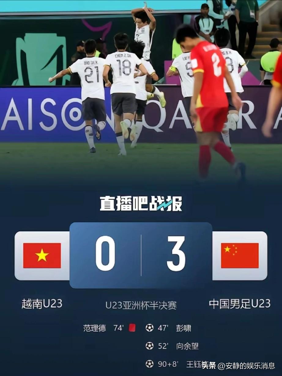 计划有变,准备争冠! 在凌晨结束的u23亚洲杯半决赛中,中国u23干净利落的把越南u23斩落马下!越南队和越南球迷在赛前对于本场比赛都是非常的有信心,觉得决赛战胜日本队应该也不是什么难事儿,官网甚至预测越南队晋级的概率高达93%,而中国队只有7%。 没想到的是,赛后国足以一场3:0干脆利落的胜利让越南队和越南球迷眼镜都打碎了,要说本场比赛中国队踢得非常出色,无论是攻势还是防守都让人刮目相看,尤其是安东尼奥的传控,更是打出了中国队应有的强队风范,充分证明了“名将”二字。