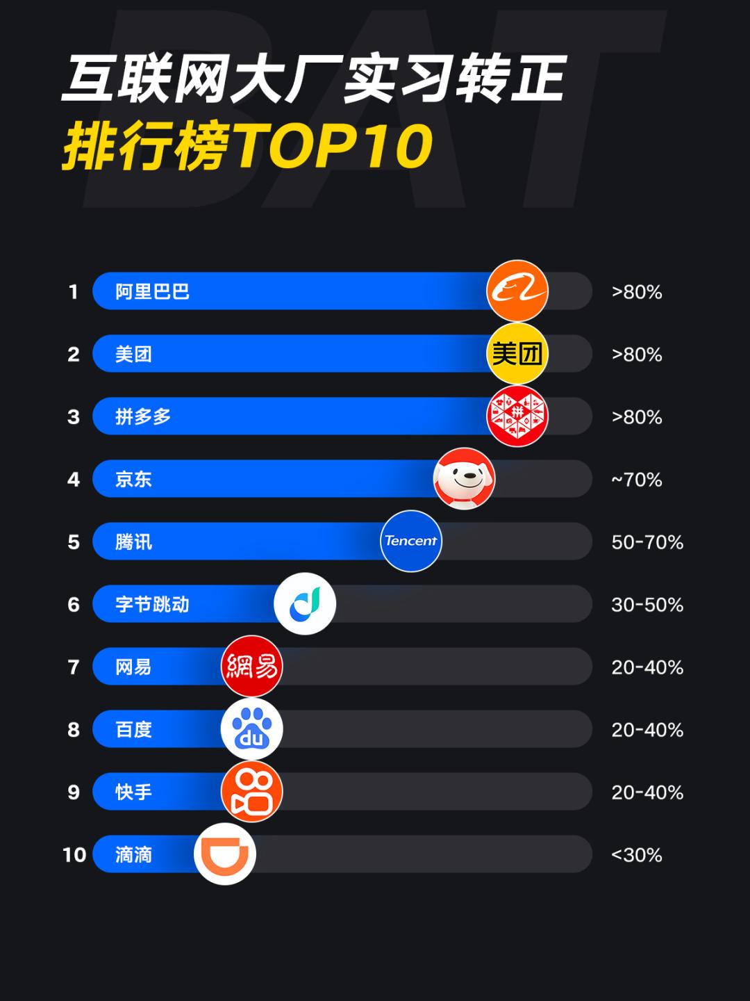实习生是大厂补充新鲜血液的重要途径,不过职场有供需标准,并不是所有的实习生都完美匹配企业职位,那么大厂实习转正淘汰率是多少呢?