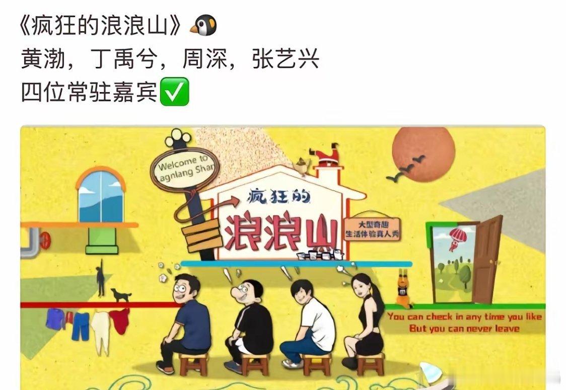 据网传,腾讯将推出新综艺《疯狂的浪浪山》。这是一档民宿生活体验真人秀,由严敏担任制作人,计划于腾讯视频播出。节目中,黄渤、张艺兴、周深、丁禹兮等6位“脑洞封神”的明星主理人,将运营一家一站式民宿度假村。节目主打“脑洞大开的设计”和“抽象服务”,致力于为顾客及观众带来“意想不到的疯狂度假体验”,营造“鸡飞狗跳的快乐历险”。网传孙红雷、邓超、雷佳音、李乃文等将作为飞行嘉宾体验民宿打卡。该综艺因有《极限挑战》原班人马参与,且风格类似《五哈》,引发了不少观众的期待。