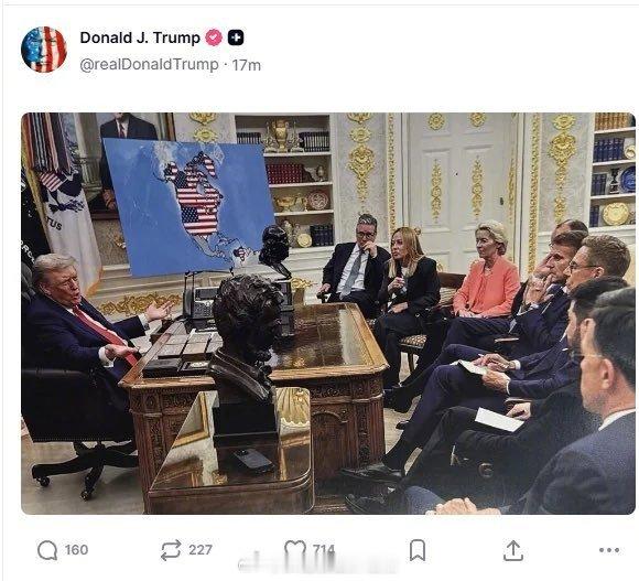不止格陵兰,还有加拿大和委内瑞拉!特朗普刚刚在其社交平台“真实社交”上发图,暗示吞并丹麦自治领地格陵兰岛。见图一。此外,他发布了一张AI修改过的在椭圆形办公室会见欧洲领导人的照片,在照片中他展示了一张地图,地图上格陵兰岛、加拿大和委内瑞拉被划入美国版图。见图二。特朗普公开马克龙给他的私信