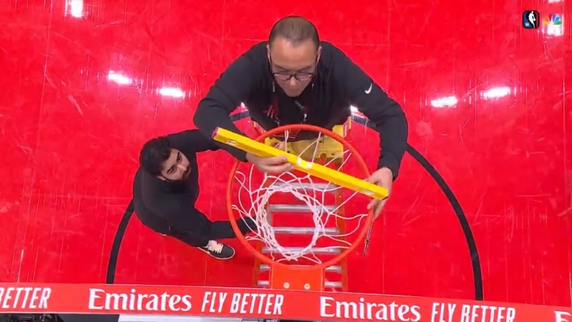 原定于9点开打的马刺vs火箭仍未开始,原因是卡斯尔在赛前热身时扣坏了篮框,目前工作人员正在紧急修理🤯马刺vs火箭