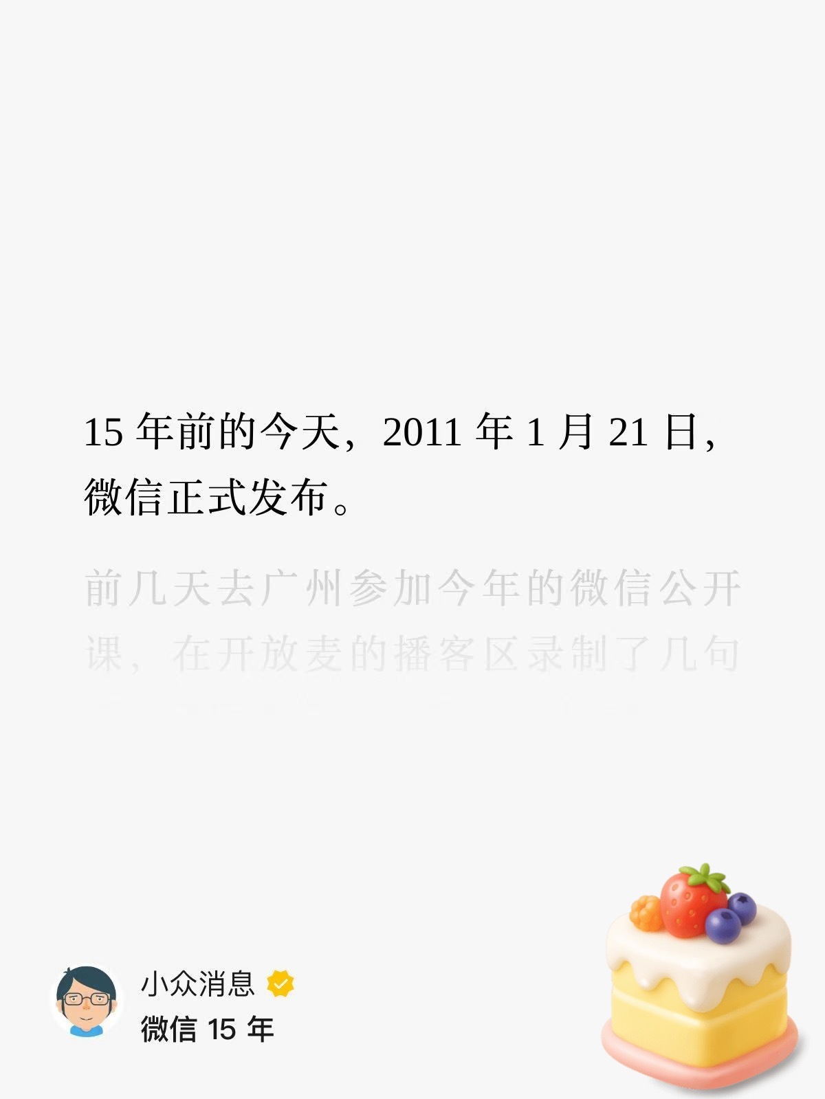 微信15岁啦,我还记得1.0那会儿是安装在我的诺基亚E63手机上的。