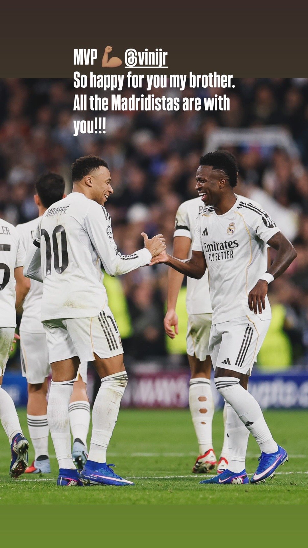 姆巴佩 IG STORY更新两则:“永恒的感谢❤️🤍@ asmonaco”“MVP💪🏽 @ vinijr我的兄弟,真心为你感到开心所有美凌格都与你同在!”姆巴佩梅开二度皇马vs摩纳哥姆巴佩