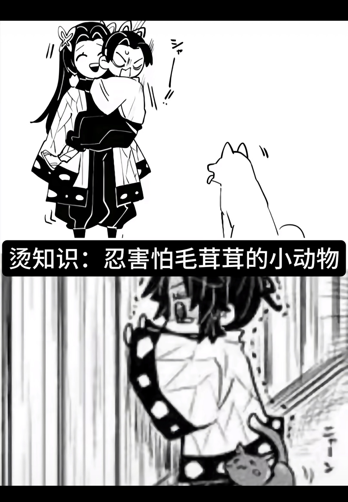 鬼灭之刃蝴蝶忍应该是不喜欢猫狗这种全身长毛的~不是害怕~但是这个图很萌
