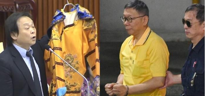 赖清德的最新形象照 各位看看怎么样 这是今天国民党和民众党给赖清德的定妆照 放在了台湾立法机构里面 因为赖清德不愿意出席台湾立法机构的问询 所以他们只能把赖清德的人形照放在里面 供大家一乐 我记得上次被批上龙袍的是柯文哲 各位猜猜 赖清德看到会开心还是生气呢?