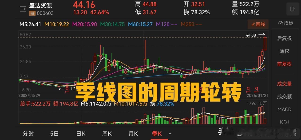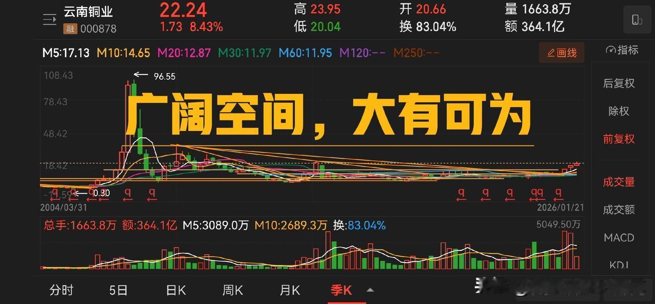 伦敦金期货走势逼近 5000 美元关口,山东黄金和盛达资源分别作为黄金和白银的龙头企业全部已经新高,并且在季线图上表现出非常强的牛市中后期的走势特征。 回过头来看铜,江西铜业已经接近历史高点,云南铜业暂时仍然保持弱势。借鉴黄金的走势规律,这两个品种未来仍然大有可为。 江西铜业有可能冲击百元整数关口, 云南铜业先看千亿市值(50 元)。 在这之后就是铝,比如南山铝业。此外还有厦门钨业、锡业股份等小金属股,已经走在了牛市的半路上。