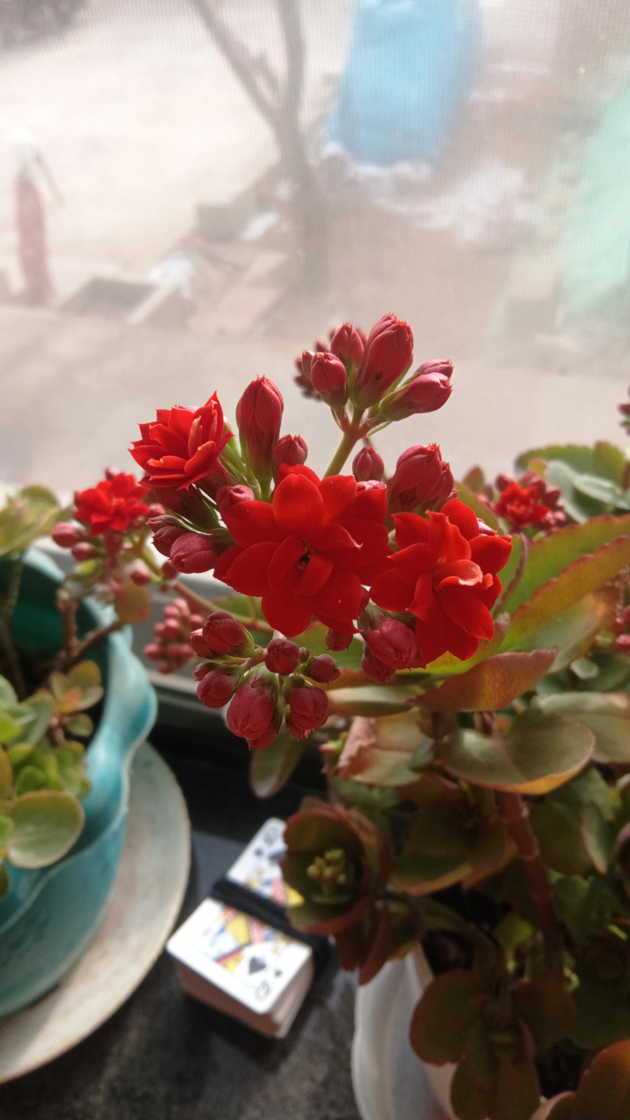 窗台上的红色花朵,生机勃勃,温暖了整个冬天。🌸🌞