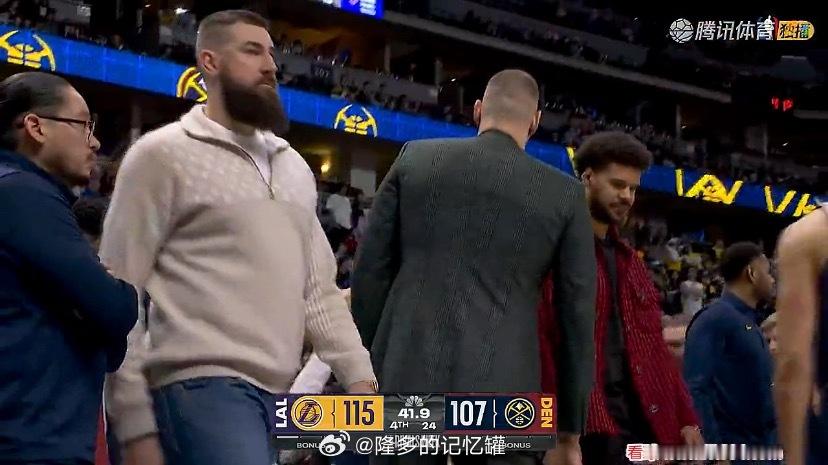 掘金少半套首发,今天差不多了。理发师在场上按捺不住了😹湖人vs掘金
