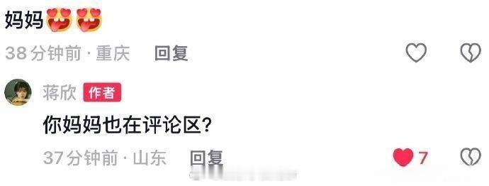 蒋欣被叫妈妈的反应蒋欣 你妈妈也在评论区 哈哈哈蒋欣被粉丝叫妈妈,姐姐神回复:“你妈妈也在评论区?”还得是你啊欣姐!