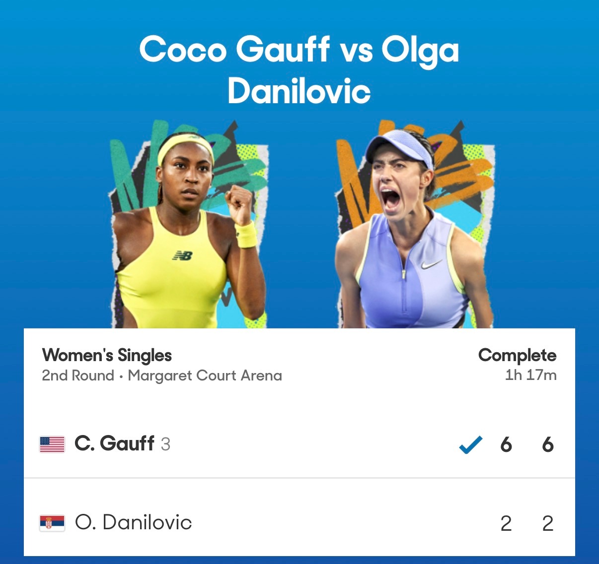 高芙晋级澳网32强!澳网女单第二轮,高芙62 62轻松击败达尼洛维奇,对手首轮击败大威,好可惜,挺想看大威vs高芙的这很澳网网球talking大会澳网2026