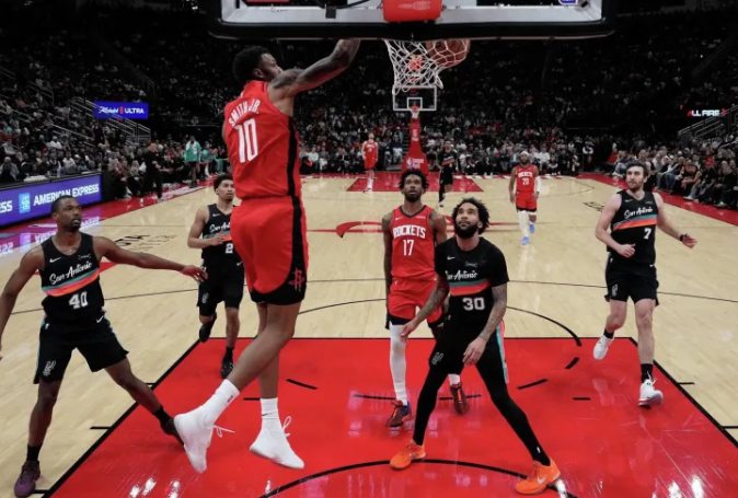 NBA常规赛,马刺对阵火箭的全场比赛已结束,火箭111-106战胜马刺。 本场比赛,火箭最多落后16分,最终以5分优势战胜马刺。 火记Bradeaux更新X,晒出关键时刻火箭表现: 里德-谢泼德:2投2中 || 6分 小贾巴里-史密斯:2投2中 || 5分 阿尔佩伦-申京:2投1中 | 2分 这群年轻人展现的一切都令人欣喜。