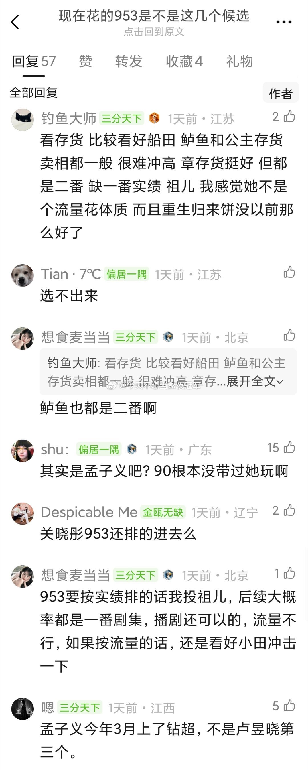 网友热讨,95后第三朵大流量🌸目前最有可能是谁?网友说论泛人气是章若楠,论亖忠粉体量是卢昱晓,论一番实绩是张婧仪/宋祖儿。 另外网友提名比较多的还有田曦薇张婧仪有打火机宋威龙有骄阳卢昱晓回应跪下和粉丝合照