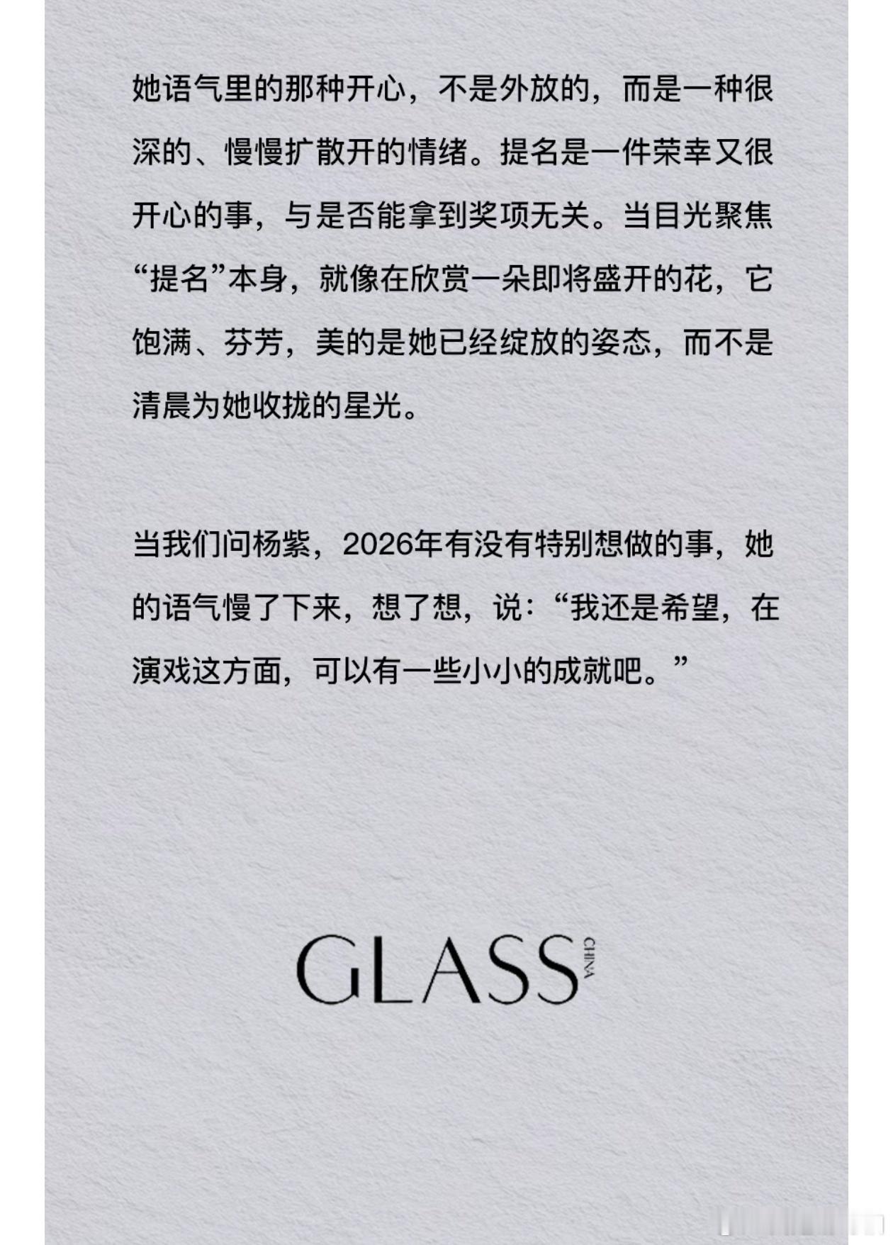 杨紫2026年特别想做的事:“我还是希望,在演戏这方面,可以有一些小的成就吧。”杨紫GLASS拍摄花絮
