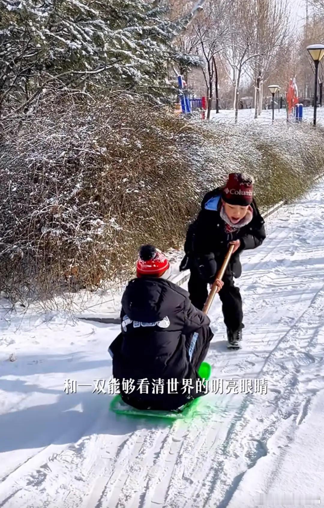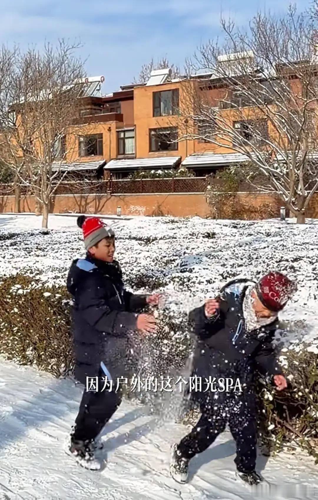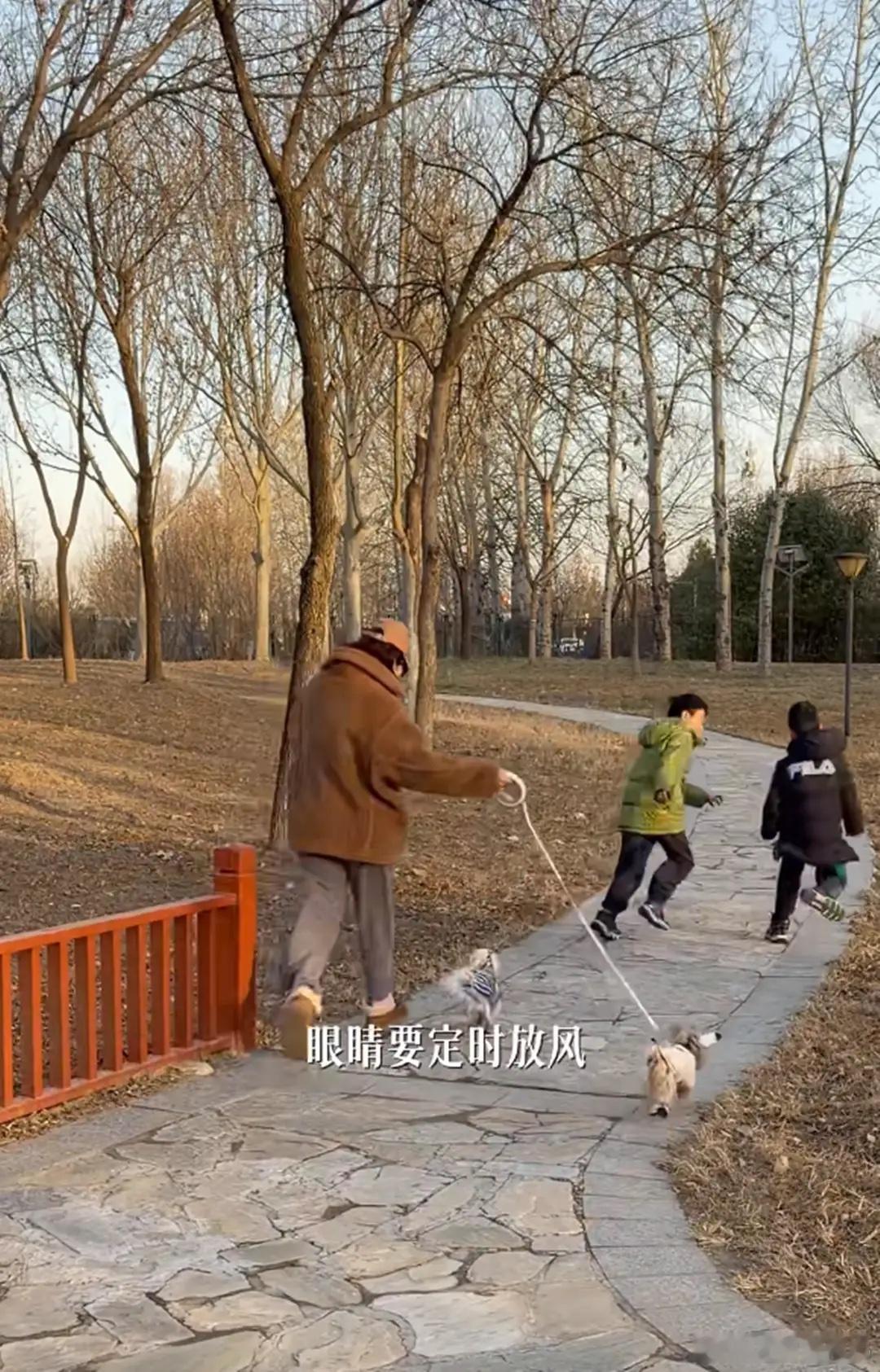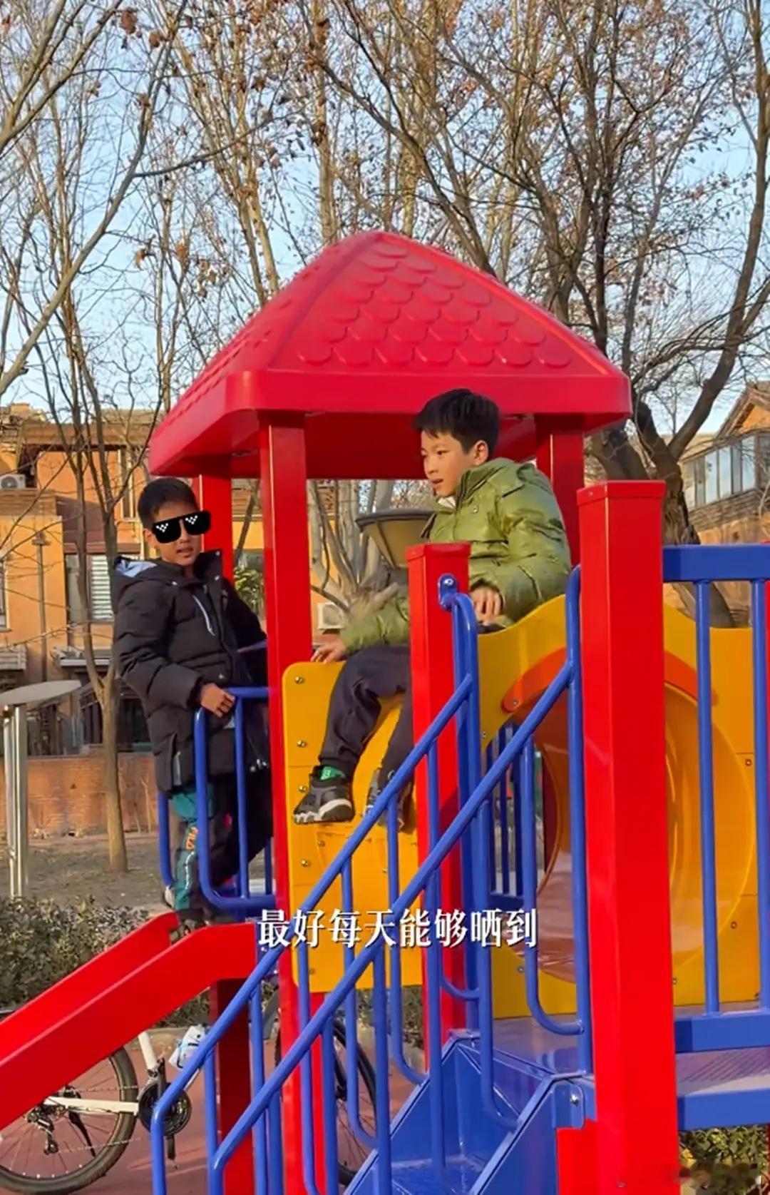 李思思带俩儿子别墅区玩耍,9岁小儿子远视储备不足,开始戴眼镜!