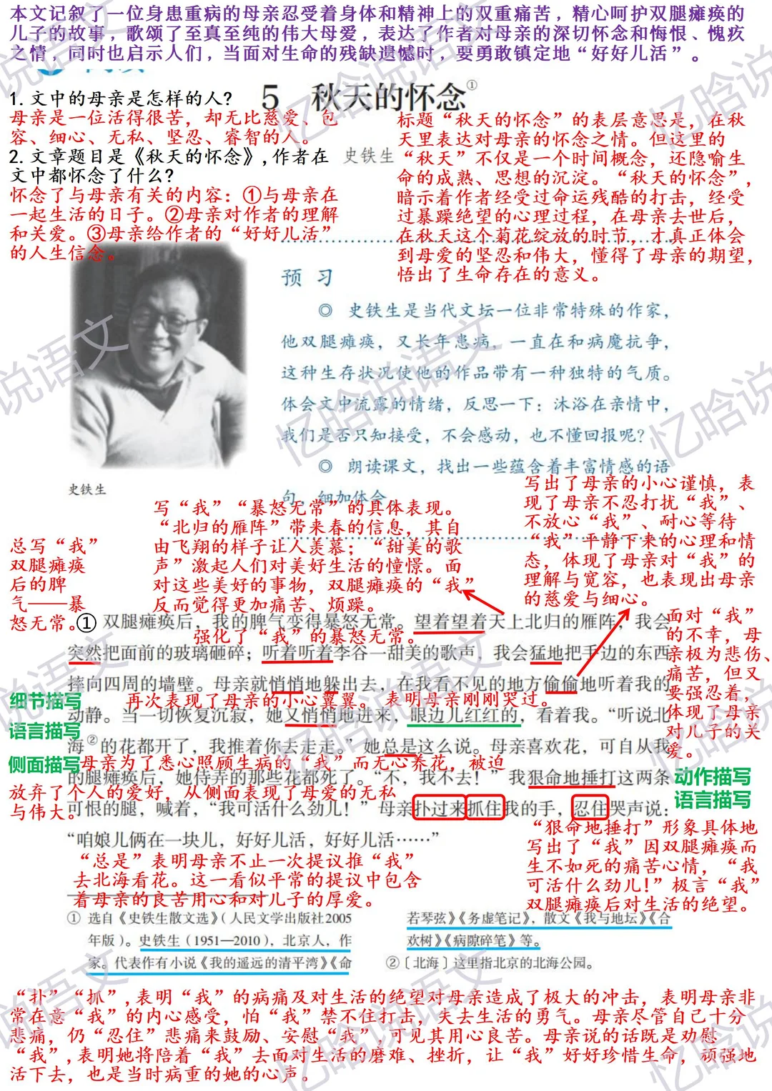 新课堂笔记|2025七上第5课《秋天的怀念》