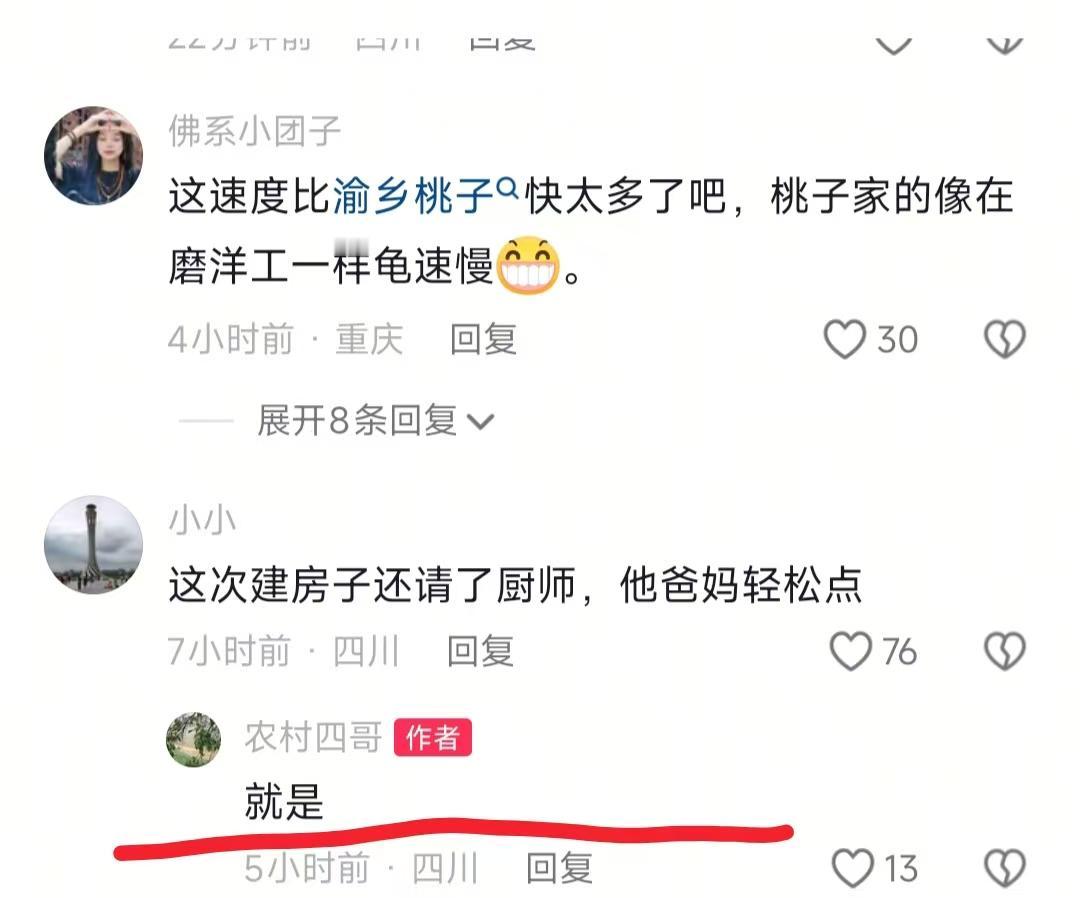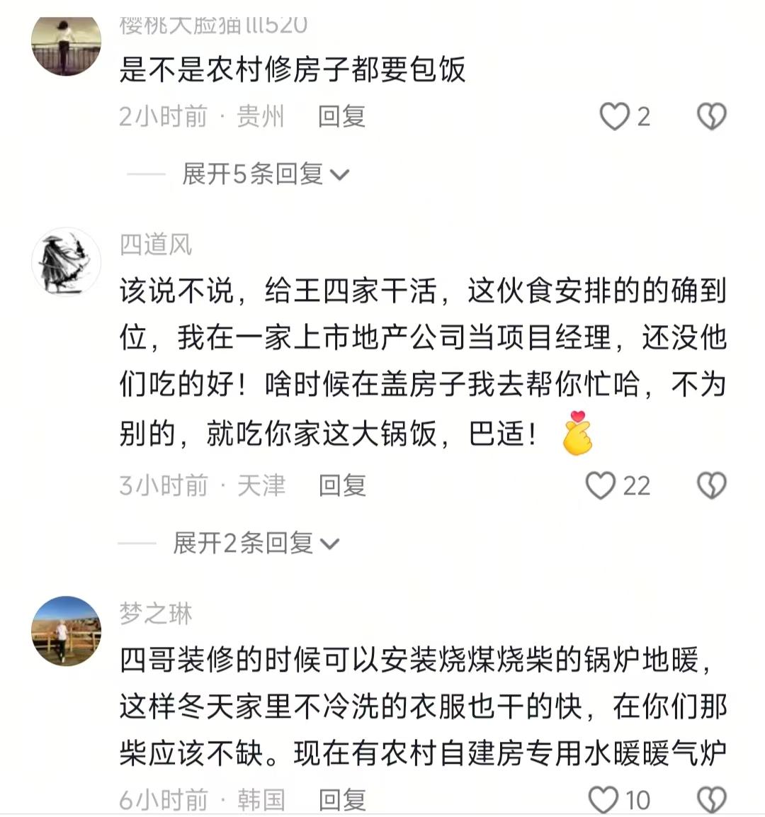 我开始有点理解梁快为什么要介绍人到农村四哥工地上班了 农村四哥这么完美的老板,谁会不喜欢啊? 不仅是因为工资给得高,最重要的是伙食非常好,中午就有肥肥肠,和烧鸡,真巴适 本来以为农村建房视频都无聊得要死,全是钢筋水泥的,结果刷到四哥的直接停不下来!你敢信?工地老板居然把工人伙食安排得比我过年还丰盛,烧鸡、肥肠、炖汤齐活,居然还备了热毛巾,我和小伙伴都惊呆了 说实话,我天天点外卖,要么寡淡要么油腻,看工人们围坐一桌吃得喷香,郁闷得我当场就想摔手机——凭啥打工人的差距这么大啊! 老实讲,本来我想快进看看一层加固、倒混凝土的进度,毕竟咱也不懂建房,纯属好奇。但后来发现做饭的小伙子才是隐藏亮点!镜头一转他就在厨房忙乎,四哥问他菜做好没,他一口一个“四叔放心”,说烧鸡、肥肠全搞掂,连四哥指定的白肉都备妥了。我晕,那肥肠看着油光锃亮的,比我上周吃的馆子还诱人,人家工地餐都这么巴适,我吃的外卖简直像糊弄饭! 然后工人们洗完手洗完头,小伙子还递上热毛巾,这细节也太到位了吧!不是吧?我之前装修房子,施工队连水都得自己带,别说热毛巾了,中午就啃个面包对付,对比下来四哥这儿简直完美!有网友说“对工人好的老板必发大财”,我觉得这话没毛病,人家常说“待人真心,事儿才顺”,说白了就是种善因得善果呗,不骗你,师傅们铺电线时四哥反复叮嘱,他们也实打实回应“放心”,这样干活能不仔细吗? 本来沉浸在羡慕伙食的情绪里,结果看到有网友问“合同写10号钢筋,施工用8号,完工才发现影响大吗”,我瞬间想起堂哥去年建房的崩溃经历!他当时图省事,没盯着施工队,合同写的10号钢筋,结果人家偷偷换成8号,住进去没半年墙面就有点开裂,找施工队扯皮,对方还说“可能是吧”“不知道”,简直胡扯!最后花了不少钱修补,真是血的教训。 坦白说,四哥的视频又暖心又提了个醒——建房这事儿,伙食好是人文关怀,工程质量才是底线啊!你想,要是钢筋偷工减料,房子住着能安心吗?或许有人觉得“随便建建就行”,但住进去的是自己,万一出问题哭都来不及。说真的,我之前也觉得建房就是“把房子盖起来”,看了网友的评论才发现,这里面的门道太多了! 总之,看了四哥的视频,我也算get到了,就是想说,找施工队别只看价格,得看老板对工人的态度,连伙食都不上心的,活儿能好到哪去?合同里的材料规格,比如钢筋、水泥,一定要盯着施工过程,别等完工才发现问题,到时候扯皮都麻烦。你说是吧!