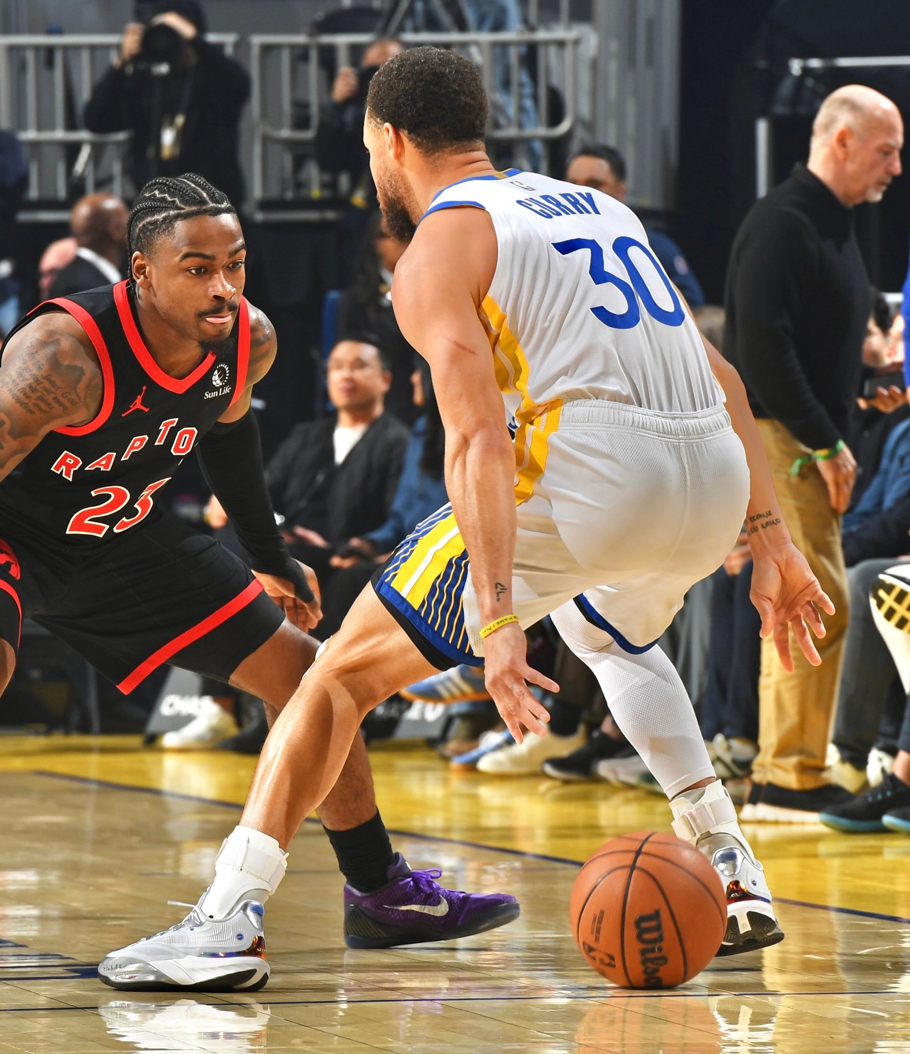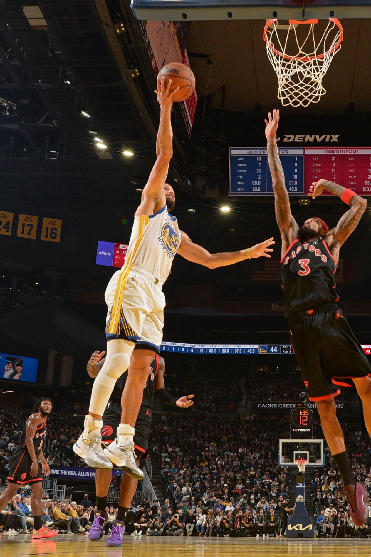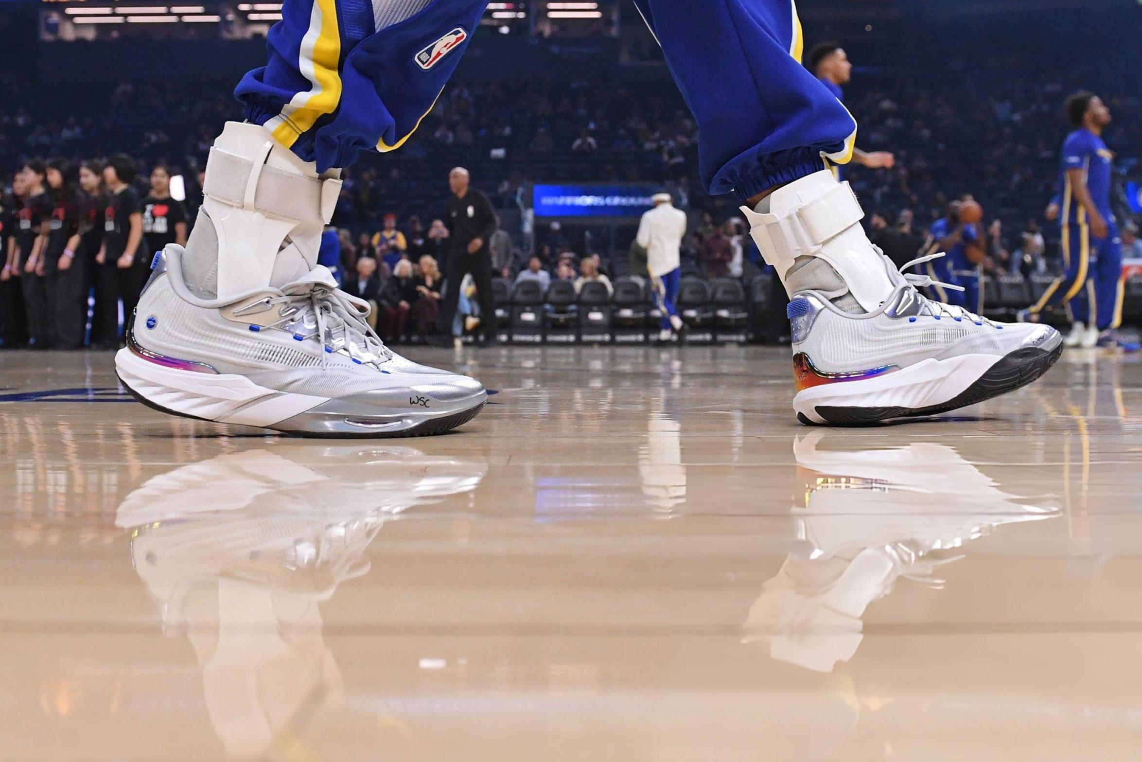 勇士迎战猛龙库里今日份入场鞋上脚Nike Shox BB4+手提安踏ATSV E