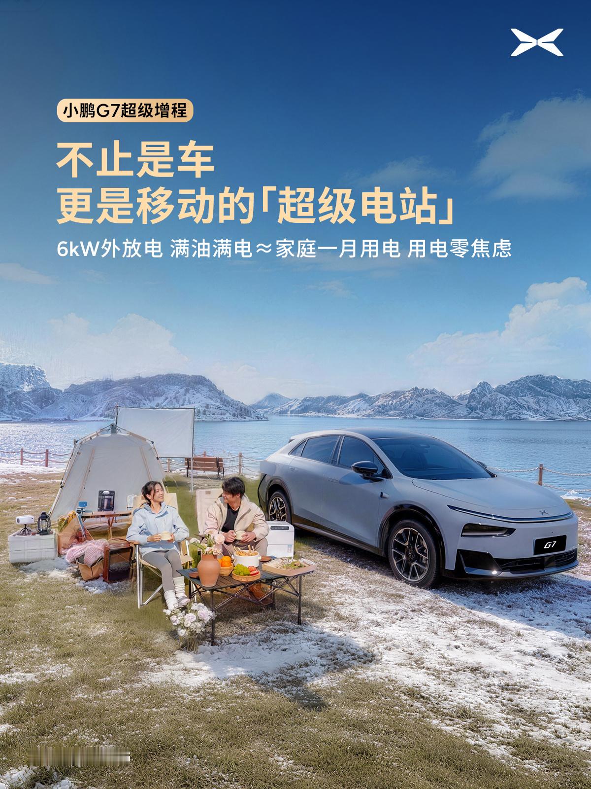 之前就有提到小鹏G7超级增程除了拥有1704km的全球最长续航外,还拥有6kW对外放电功率,满油满电的情况下能支持一家人的户外用电自由,还能 小鹏G7超级增程无焦虑自驾游 感觉有了小鹏G7就跟有了一个家一样