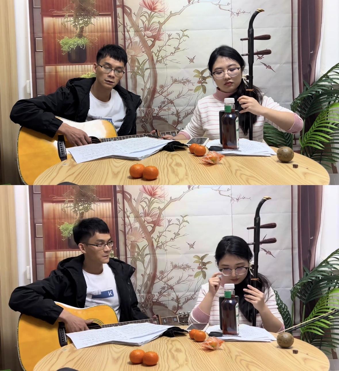 放假前夕唐尚珺表演才艺,唐尚珺与合作伙伴二人上演《神话》。唐尚珺弹吉他,女孩拉二胡,不过女孩的二胡拉的很漂亮,句句不离调。唐尚珺直播团队本有三人,不知何原因走了一个女孩,如今还剩下两人,听说是直播三人解散了,剩下两人没事直播带货。网友劝唐尚珺赶紧追女孩,确实两人在一块氛围挺和谐,不过唐尚珺与女孩年龄悬殊太大,大概率不会在一起。