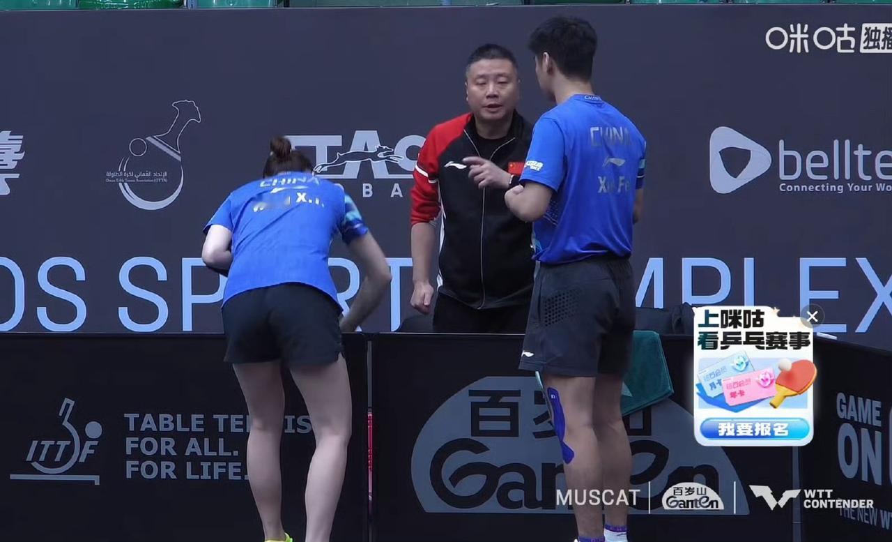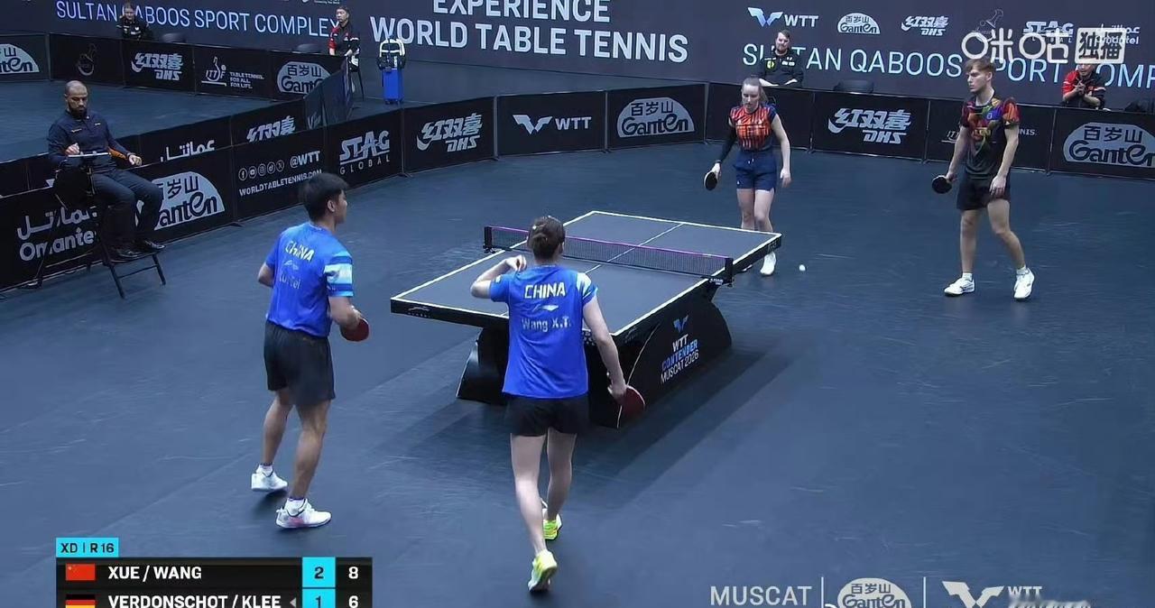 薛飞/王晓彤🇨🇳晋级混双八强! 场外指导确定是新晋国家女一队教练郑长弓指导[赞]! 刚刚结束的一场WTT常规挑战赛马斯喀特站混双1/8决赛中, 薛飞/王晓彤🇨🇳3-1击败德国组合维尔登斯考特/克利🇩🇪,四局比分为:11-6,7-11,11-6,11-7。 但是,国乒刚刚晋级混双八强的这对儿组合和黄友政/石洵瑶接下来就要内战,也就是下一轮:黄友政石洵瑶🇨🇳VS薛飞王晓彤🇨🇳 !