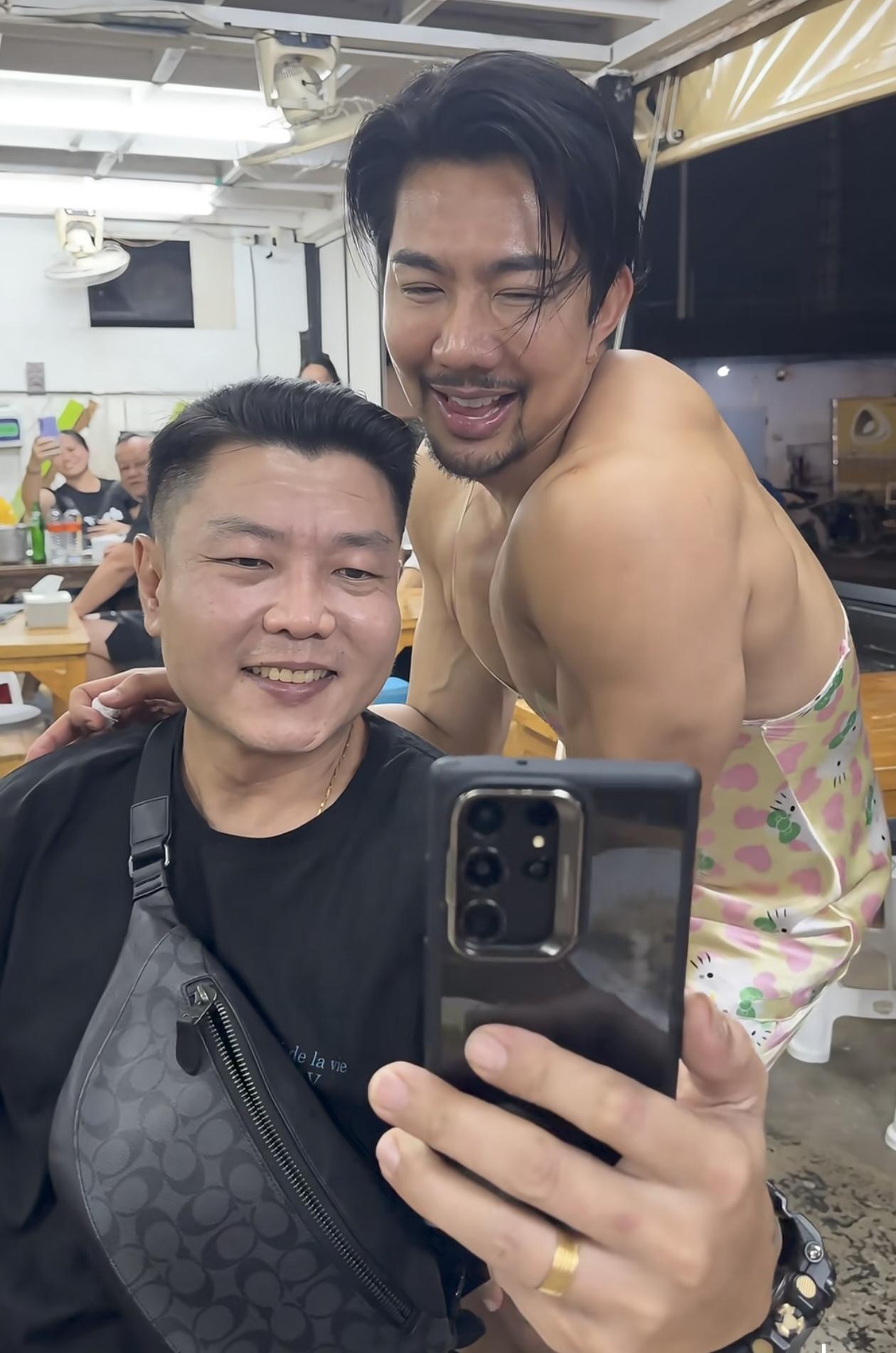 哈哈,这肌肉猛男配上Hello Kitty吊带套装,简直是金刚芭比的终极形态! 一脸“我超凶但衣服超甜”的反差感,把夜市的氛围感直接拉满, 周围阿姨的手机都快举到脸上了,主打一个“辣眼睛但舍不得移开视线”。