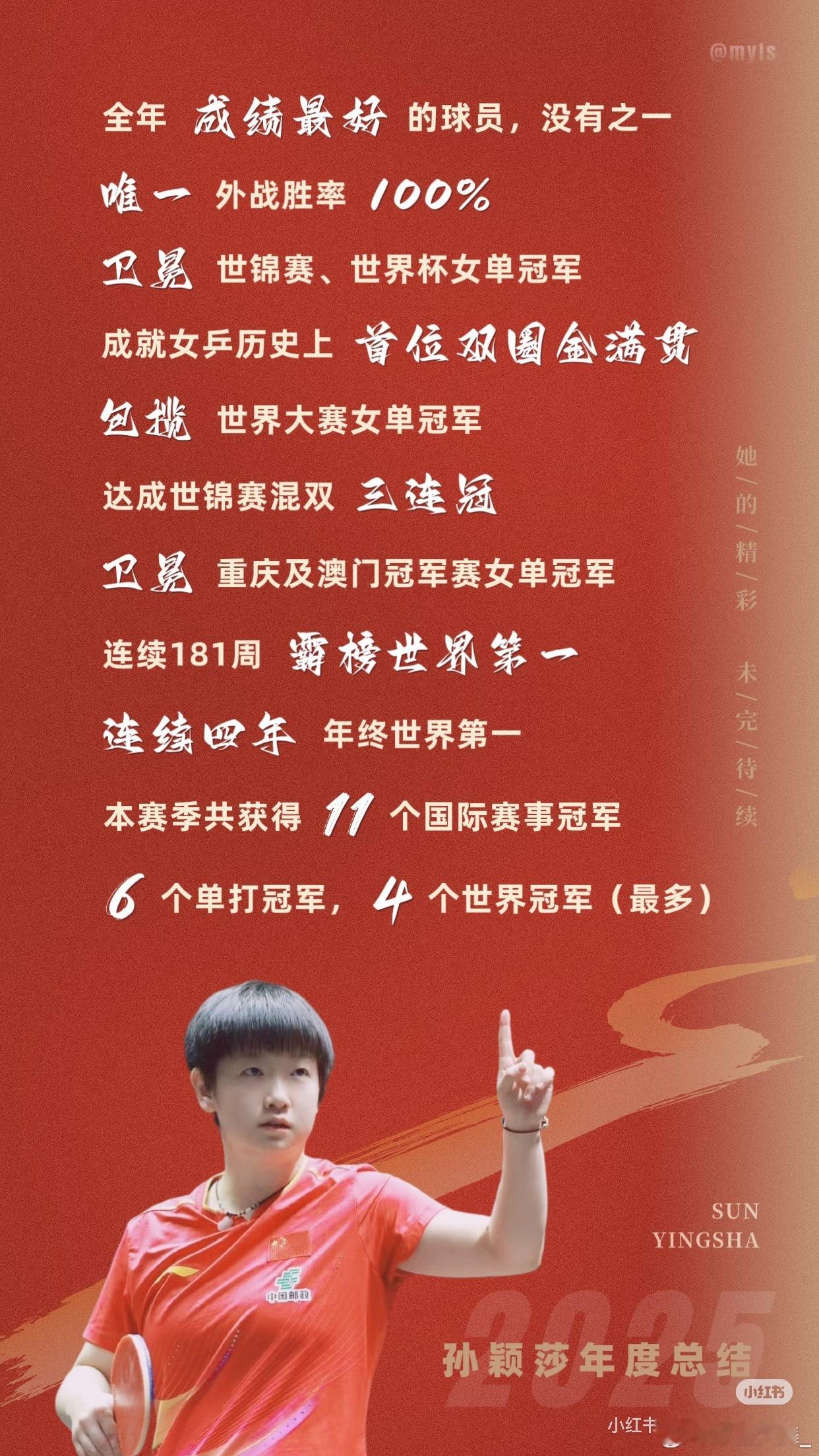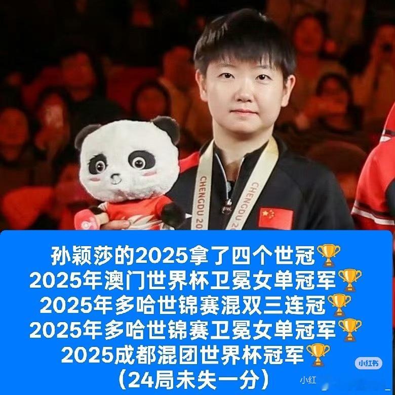 孙颖莎2025年获4个世界冠军莎莎,无论怎样的荣耀和喜爱她都值得!让人感动、安心的女孩子!2026年祝福莎莎都顺遂如愿!