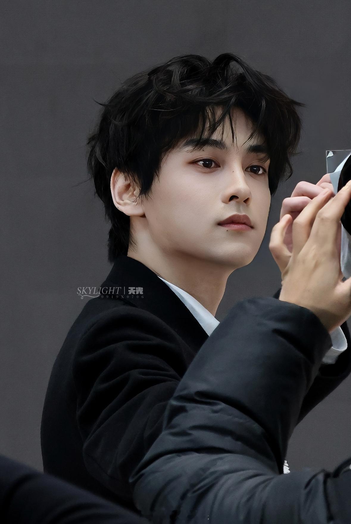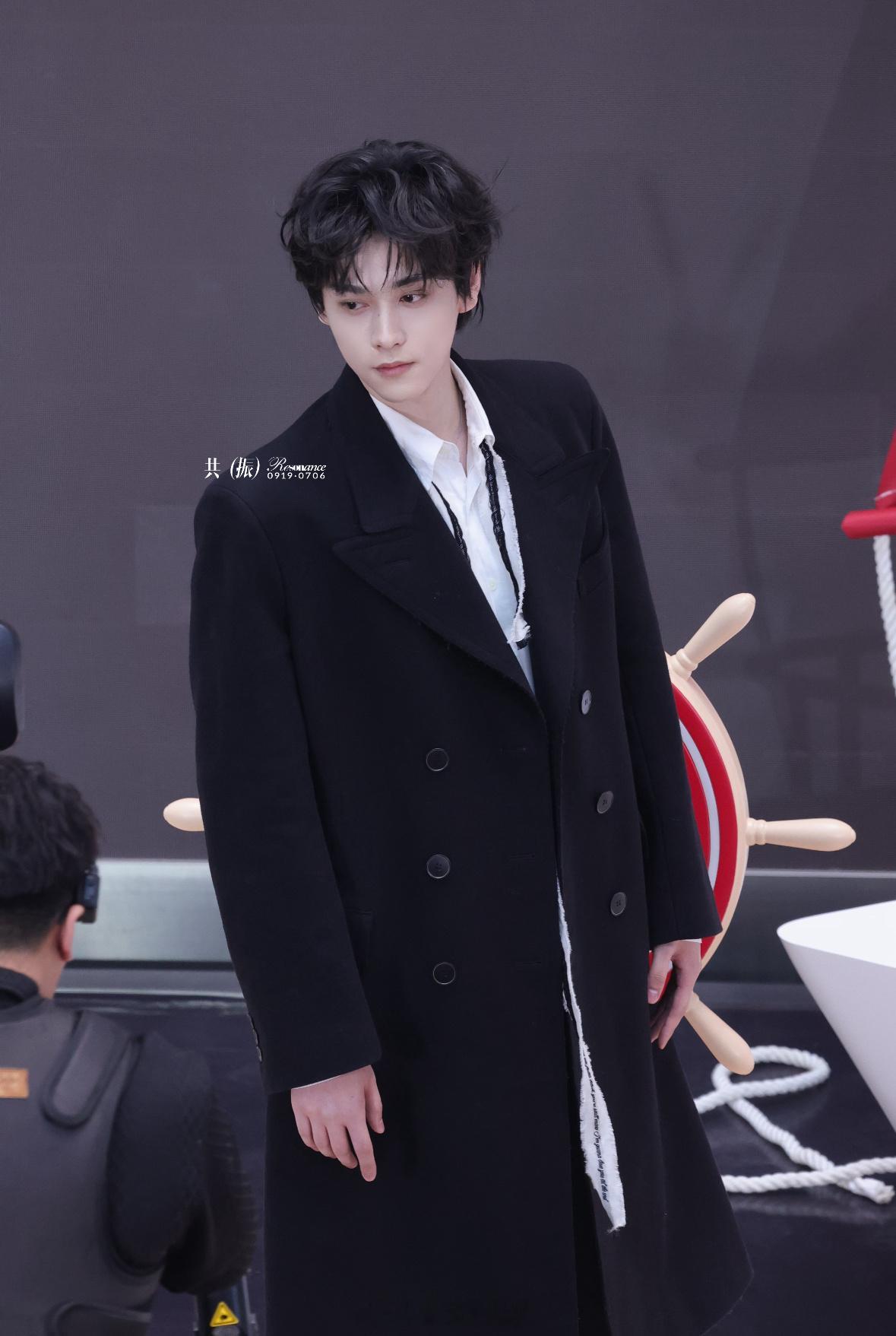 田栩宁黑大衣卷毛造型田栩宁宁波线下活动状态 此男五官这个优越~