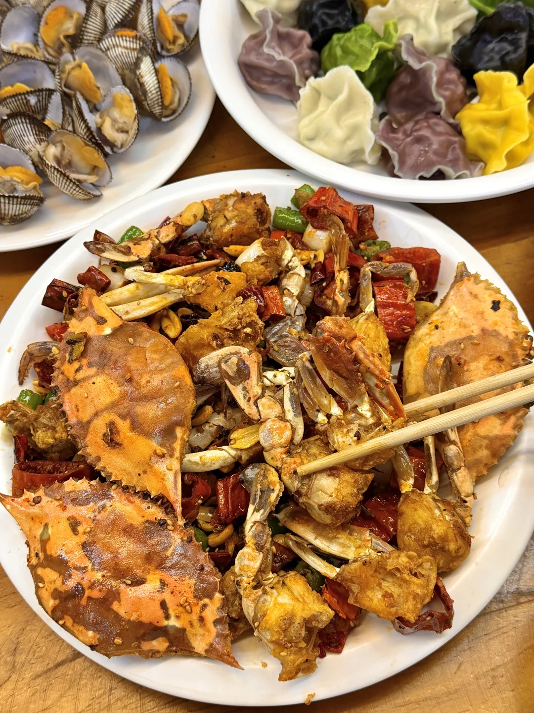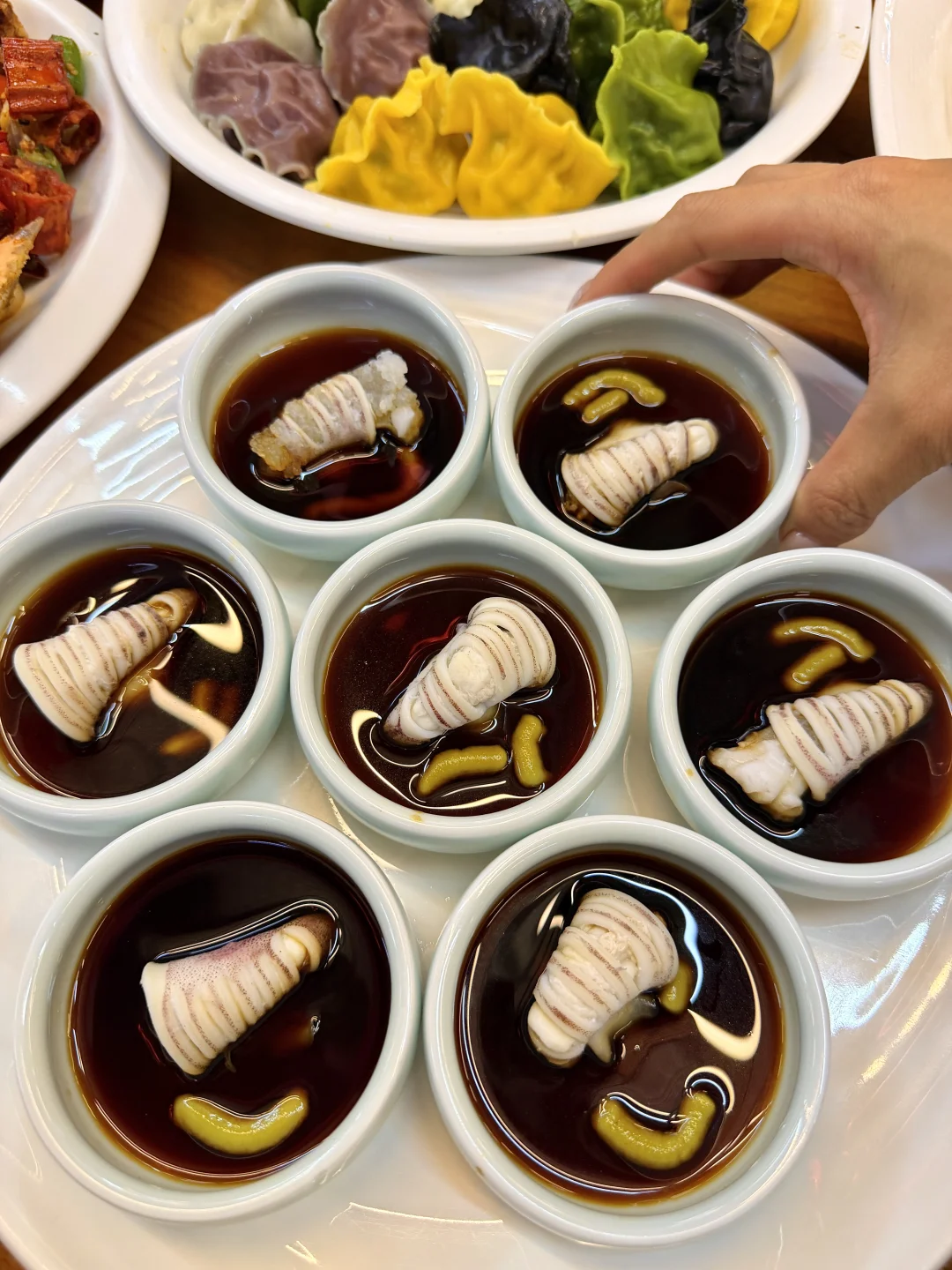 来青岛一定一定要吃这个瑶柱!现煮的好Q弹,煮出来好鲜甜完全不腥,配蘸料嘎嘎好吃上瘾🤤🤤🤤 就在火车站附近!叫:民国海海鲜饺子楼!开在市中心,海鲜价位真的很良心!人均才六七十,生意好不是没有道理的。。全家福水饺一口爆汁,吃一次就好吃到要打包两份带走!还有它家主打的海肠捞饭,谁吃谁懂趁热吃ju'ju香 味道吊打那些网红海肠捞饭,还有香辣蟹、大鱿鱼……每道菜都是正宗老青岛味!还有人没吃过我都会为他感到遗憾的!