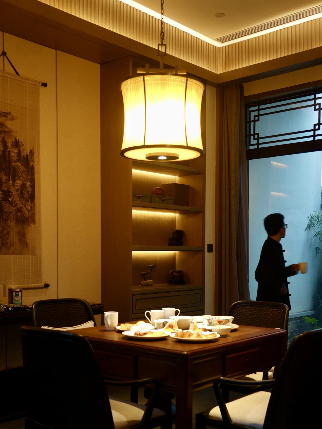 出发前特意选了一身素雅的新中式🏮宋品的雅,从踏入的那一刻知这仪式感对了。青瓦、木构、悬山式屋顶,光影在廊道间缓慢移动。78栋临湖别墅藏于山城绿意间,这里没有浮夸的炫丽,只有宋式美学的清雅与留白。真正的“老钱风”,都藏在这白墙黛瓦,砖雕木刻不张扬的奢华细节里。