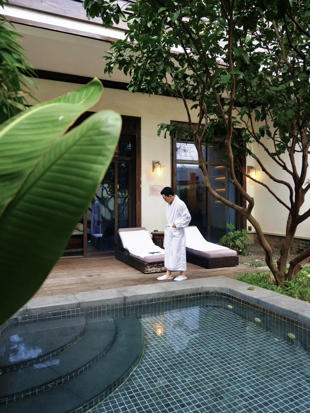 我入住的是带私汤的别墅,冬日山间,暮色四合时泡进雾气氤氲的汤池♨️周身寒意被一寸寸驱散,这一刻,只有温润的水声与自己的呼吸。私汤春节前夕来正合适,和家人围坐汤边闲话,没有人群喧闹,只有汤泉暖身、岁月静好,把一整年的疲惫都泡进这池温柔里。新的一年就该这样安静、温热地开启。