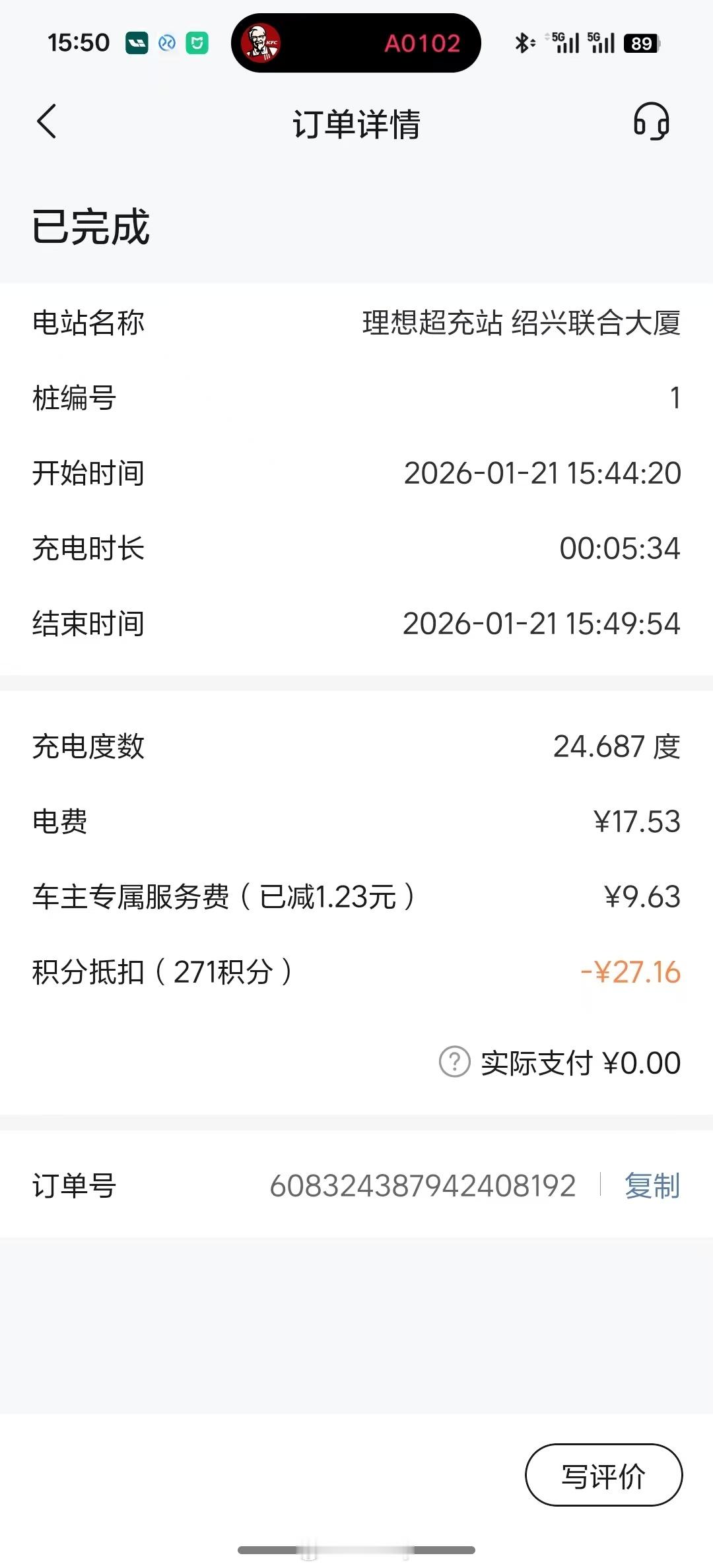 现在理想汽车在理想超充站充电,已经有车主专属优惠了吗?图里的服务费有显示“车主专属服务费(已减1.23元)”。理想汽车