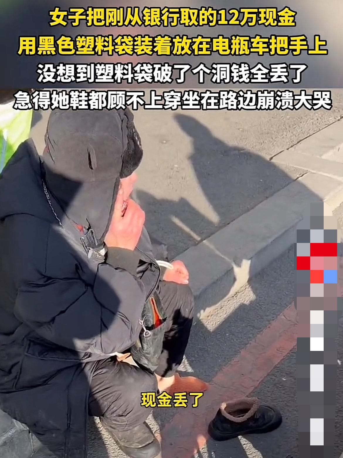 辽宁女子12万现金挂车把,转眼全没了? “大姐你别光哭啊!赶紧报警!”在辽宁街头,一位路人冲着瘫坐在路边的女子急得直跺脚。张大姐骑着电动车突然刹住,看着车把手上破了个大洞的黑色塑料袋,整个人瘫坐在地,眼泪啪嗒啪嗒往下掉,话都说不全:“我的钱,全没了,我刚取的啊……”袋子里装着她刚从银行取出来的12万现金,准备给儿子结婚用,这会儿全撒在了马路上! 路过的小王赶紧停下车,帮着捡散落在路边的钱。原来张大姐怕钱放车筐不安全,特意用厚塑料袋裹了三层,挂在车把上,谁成想袋子早被电动车颠簸出个小口,钱一张张往外掉,等她发现时,早不知道丢了多久。 “我骑了三条街,钱可能撒了一路……”张大姐抹着眼泪说,她取完钱急着去市场买菜,没注意袋子破了。有路人翻出手机录像:“刚才看有个骑三轮的老头捡了几张,还有个穿红袄的大姐蹲在路边数钱……”张大姐听得直跺脚,12万是她和老伴攒了五年的养老钱,儿子下个月结婚正等着用呢! 民警赶到后,调取了沿途监控,发现钱是从银行门口开始掉的,一路撒到两公里外的十字路口。有位环卫工说:“我扫到几张,以为是假钱,捡起来一看是真钞,正想着交给派出所呢!”还有个小超市老板提供线索:“穿红袄的大姐在我这儿买了瓶水,付钱时掏出一沓百元钞,说是路上捡的。” 目前警方已立案调查,通过监控追踪捡钱者,同时呼吁市民如果捡到现金请尽快归还。“这钱是给孩子结婚的,我们老两口攒一辈子不容易……”张大姐说着又哭了,路过的大妈拍拍她肩膀:“别急,现在监控这么清楚,肯定能找回来!” 12万现金撒街事件引发热议,有人说“现金还是得放包里”,有人问“捡钱不还算违法吗”,还有人支招“下次用背包绑紧点”。这事儿要是搁你身上,会咋处理?来唠唠! [免责声明]文章的时间、过程、图片均来自于网络,文章旨在传播正能量,均无低俗等不良引导,请观众理性看待本事件,切勿留下主观臆断的恶意评论,互联网不是法外之地。本文如若真实性存在争议、事件版权或图片侵权问题,请及时联系作者,我们将予以删除。
