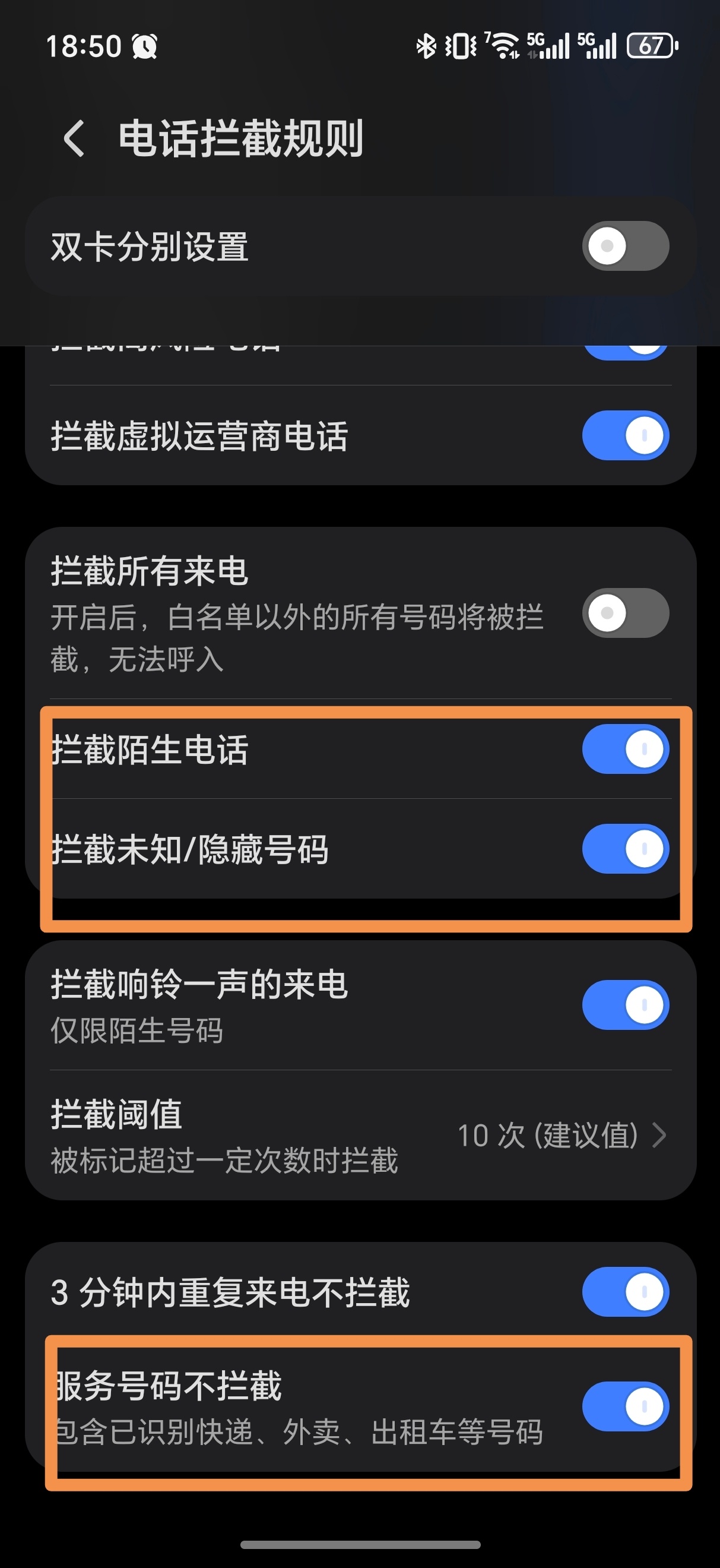 子聪打开荣耀手机的陌生电话拦截每天清静好多,再也没有骚扰电话打过来。荣耀的陌生电话拦截打开之后,底下还可以再打开服务电话过滤。这样的话,快递、外卖,还有打车电话就不会被拦截。其实那些陌生电话也没多少是正儿八经有事儿的。除了推销,就是保险,还有广告,拦截了也没有任何影响。