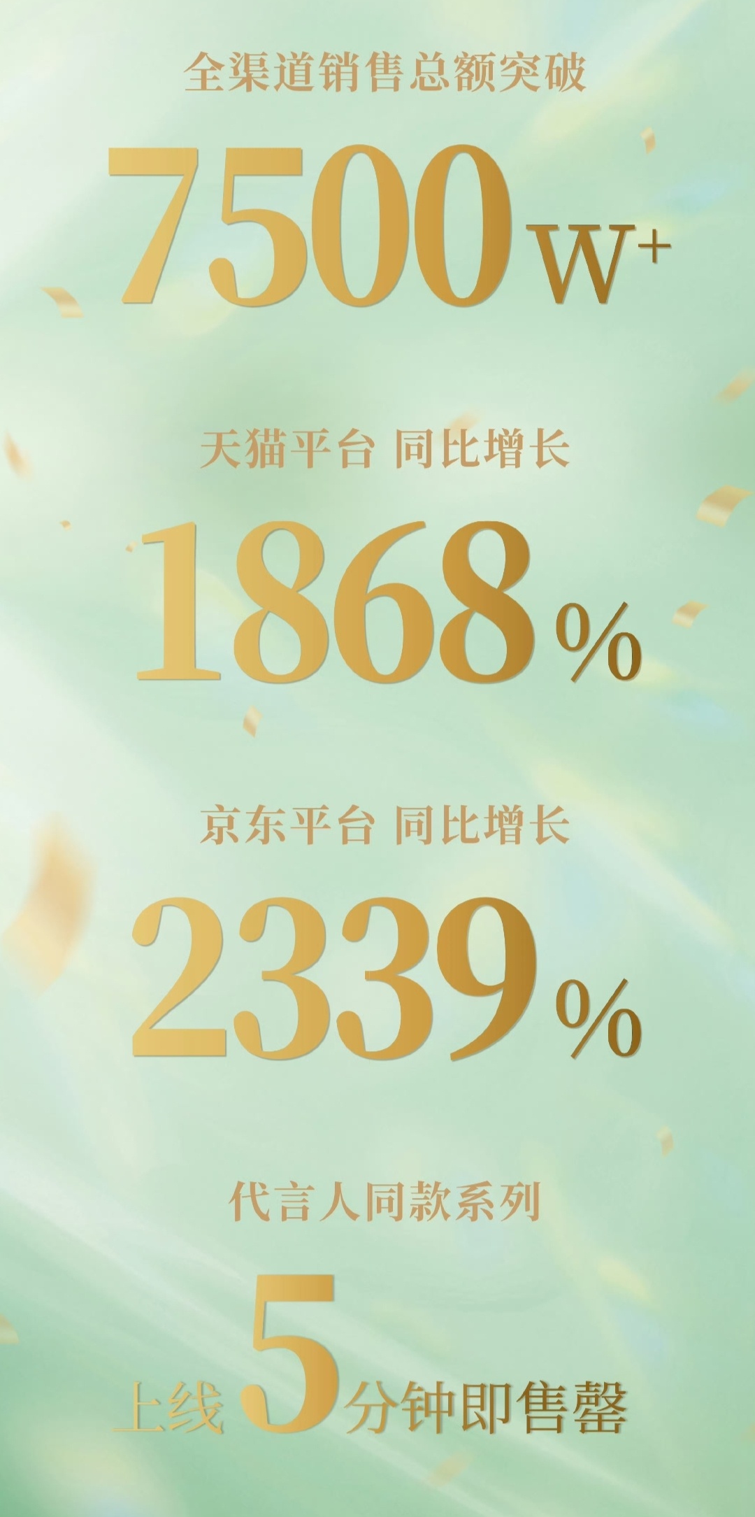 丁禹兮全渠道销售总额突破7500w丁禹兮✘老凤祥官宣24小时战报出炉🔥全渠道销售总额突破7500w+!天猫平台同比增长1868%!京东平台同比增长2339%!!代言人同款系列上线5分钟即售罄!丁禹兮老凤祥战报