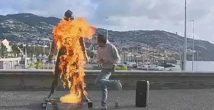 C罗雕像遭人纵火,嫌犯跳舞挑衅引众怒 一名青年在葡萄牙马德拉岛丰沙尔市中心的C罗博物馆前,公然焚烧克里斯蒂亚诺·罗纳尔多(C罗)的铜像,并围绕火堆跳舞、拍摄视频上传社交平台,引发轩然大波。 据葡萄牙媒体报道,该男子先将易燃液体泼洒在C罗雕像上,随后点燃火焰。火势迅速蔓延,几乎吞噬整座雕像,甚至一度险些烧到他自己的衣服。然而,他不仅未加躲避,反而打开随身携带的音响,伴随着音乐跳起舞来,举止极具挑衅意味。 这段视频很快被发布在其拥有约1000名粉丝的Instagram账号上。个人简介自称是“一名普通人、自由风格艺术家兼本地居民”。他在配文中写道:“这是给克里斯蒂亚诺的最后警告。”此言一出,立即激起公愤。 马德拉警方表示,已确认涉事男子身份,但尚未实施抓捕。有消息人士透露:“此人身份已经查明,且并非初犯——此前就曾卷入过类似事件。” 目前尚不清楚雕像是否受损。尽管最初火势猛烈,但很快自行熄灭,未造成更大范围的破坏。即便如此,这一行为仍引发强烈谴责。视频下方涌现大量愤怒评论,许多网友痛斥其行为“荒唐”“不可接受”。 C罗博物馆方面回应称,已将全部相关情况移交警方处理,暂不作进一步评论。 值得一提的是,这座被焚毁的雕像是2014年由C罗亲自回乡出席揭幕仪式的纪念物,他曾称那是“一生中极为特别的时刻”。该雕像因造型独特,当年在全球引发热议,甚至一度成为网络恶搞的对象。2016年,它曾遭球迷破坏后被移走修复,之后重新安置于博物馆前。如今再度遭遇人为破坏,令人唏嘘不已。