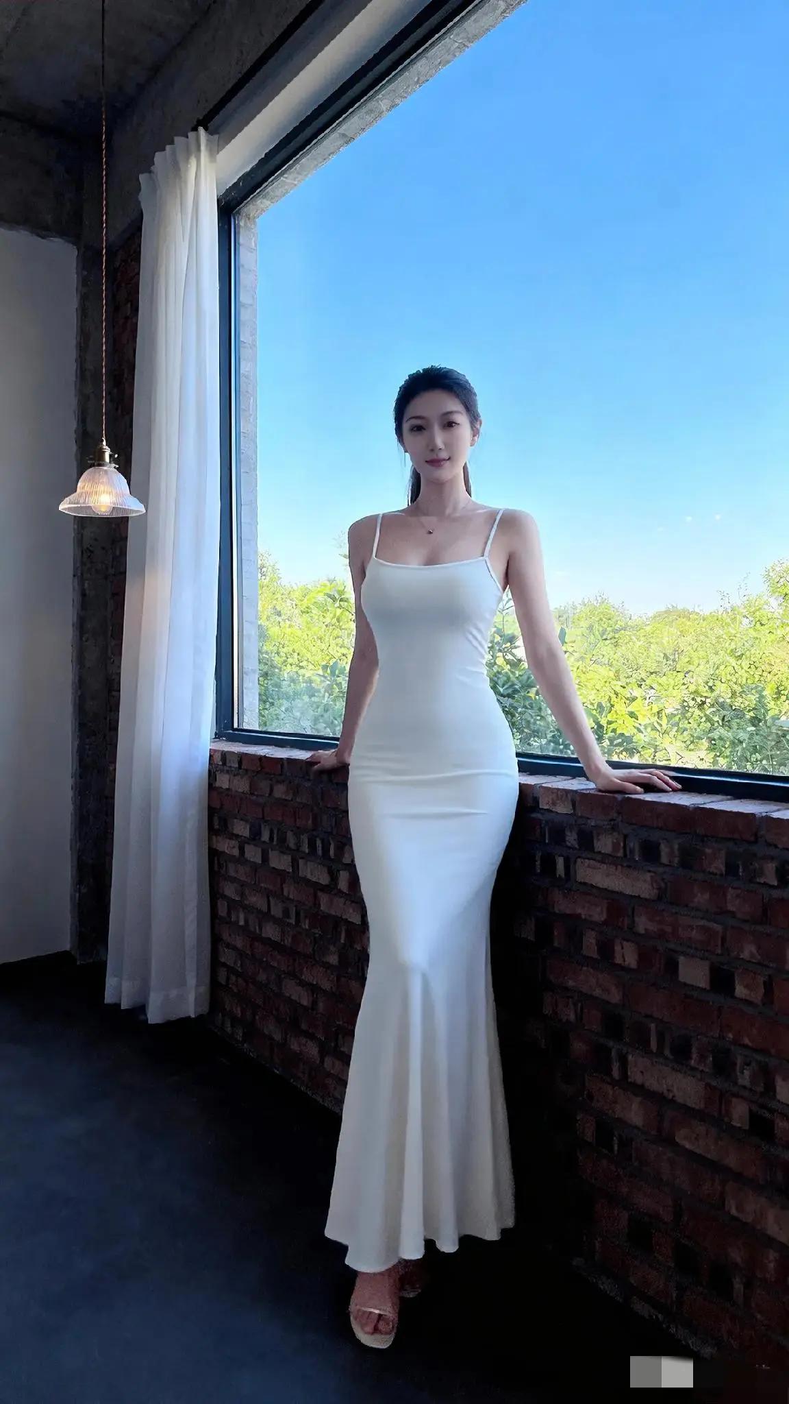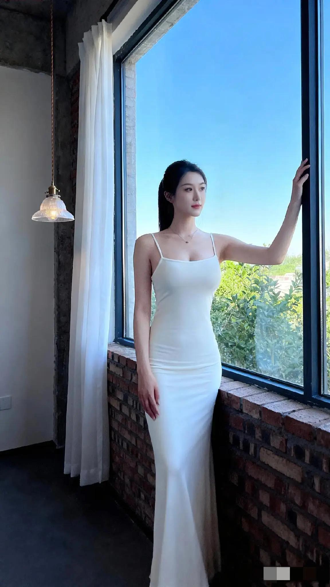 优雅白裙,窗前静候,岁月静好