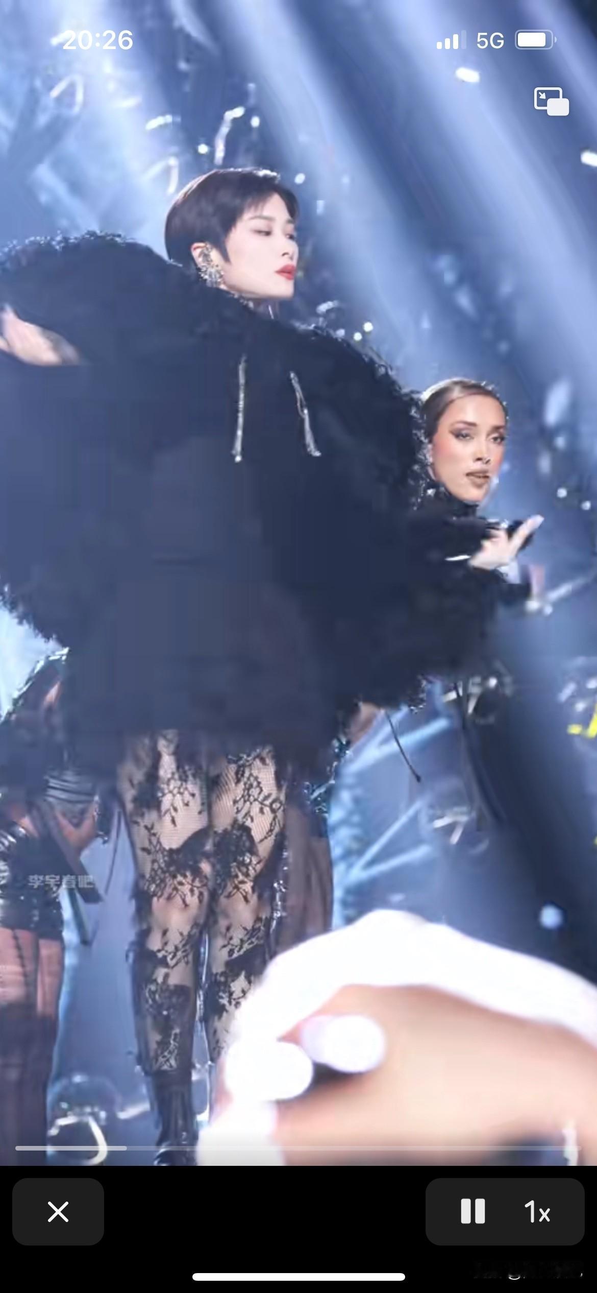 天啊,第一次见李宇春老师穿丝袜出场,这个丝袜穿得太性感了,还是她的衣品比较出众,简直就是无敌的存在,冷艳,洒脱,高级感满满。 舞台魅力就是如此的酷,灯光一亮,音响一响,全场焦点舞台皇后闪亮登场,这就是帅气的表现,明明穿的是性感的衣服,却是帅酷的!喜欢一直喜欢,实在是太好看啦,颜值,跳舞台风,每个表情,简直是迷得不要不要的。
