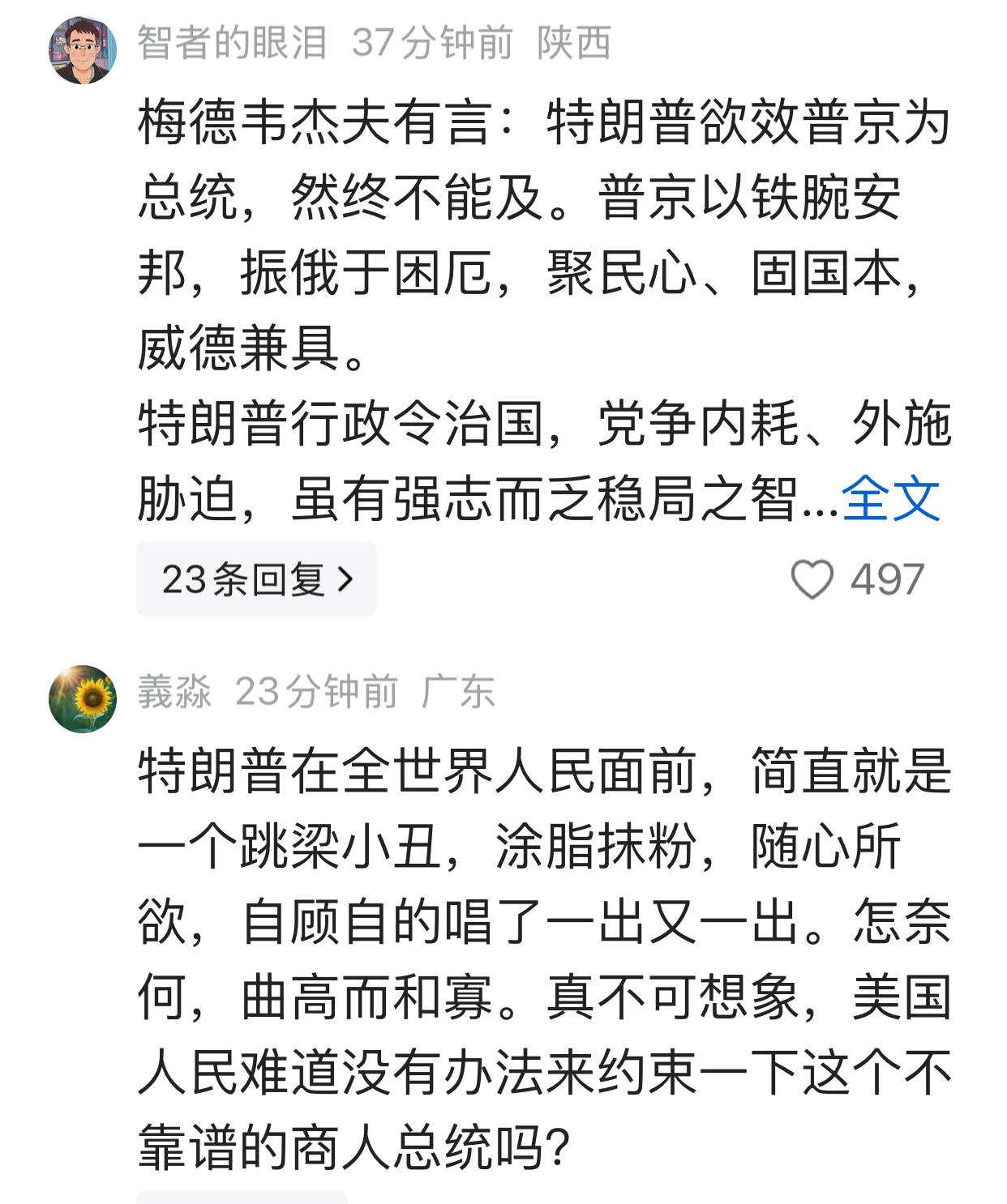 清醒的人特朗普总统是美国历任总统中较清醒的一个。他在20日推特上发文表露了真实