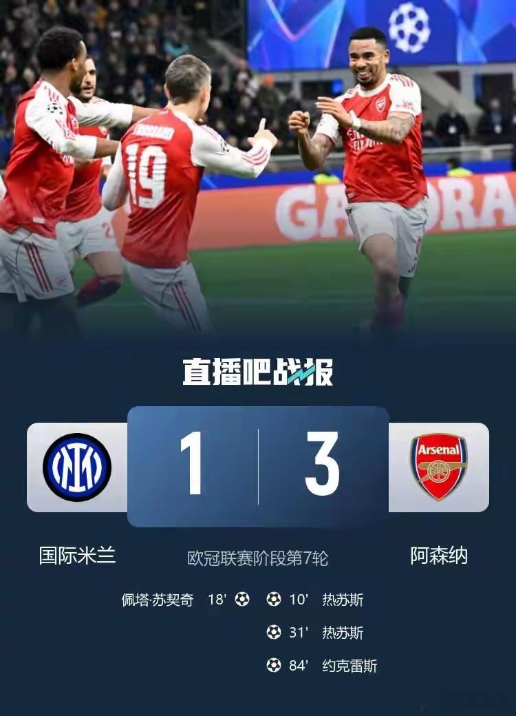 阿森纳今年最少三冠王!枪迷们真的可以期待了,欧冠已经稳前八,联赛也有优势,联赛杯也基本上进决赛了。这场欧冠首先要给塔子哥点赞,大胆轮换,实践证明替补能力也很强,该给机会就得放手让替补上去多踢踢比赛,这样才能保持好的竞技状态。感觉欧冠比联赛好踢,能保证至少以前两名进欧冠淘汰赛了。接下来好好准备周末踢曼联的比赛吧,曼联势头正盛,不好踢,加油吧!最后再说下小国际,本赛季的国米真的稳。虐菜很稳,打强队也很稳。没有任何意外。足球欧冠阿森纳