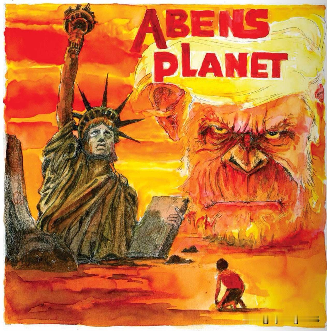 “人猿星球”。丹麦媒体(这里指的是《政治报》)描绘的景象简直如同世界末日。 有一点不明白:为什么他们把美国的自由女神像画成这样,却不把丹麦的小美人鱼画成这样?难道她最终会彻底消失吗?